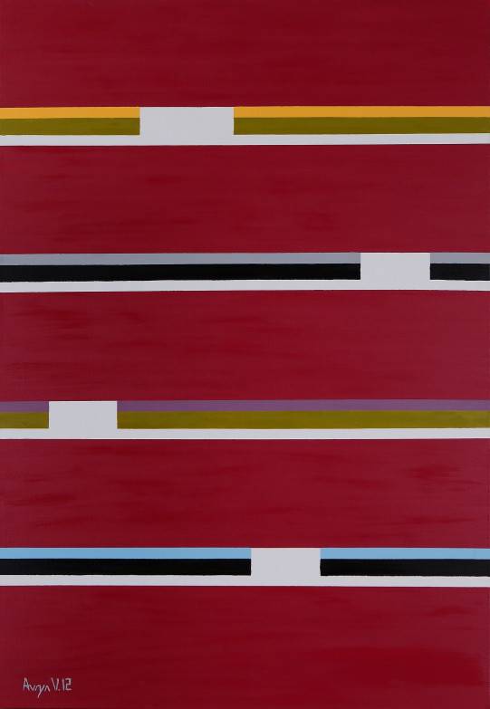 Obraz, który mamy przed sobą, to niezwykle interesująca kompozycja bazująca na prostych kształtach i zdecydowanych kolorach. Dominującym tłem jest intensywna czerwień, która wprowadza nieco dramatyzmu i dynamiki. Na tym tle umieszczone są poziome pasy w kolorach żółtym, czarnym i niebieskim, przełamane białymi przerwami. Te kontrastujące barwy tworzą rytmiczną sekwencję, niemal jak dźwięki w muzyce. Atmosfera obrazu jest jednocześnie spokojna i pobudzająca, przywodząc na myśl harmonię i chaos współczesnego świata. Styl artysty wpisuje się w nurt abstrakcji geometrycznej, charakteryzującej się czystymi liniami i minimalistycznym podejściem do formy. Technika, jaką posłużono się w dziele, może sugerować inspirację malarstwem Mondriana. A emocje? Cóż, może wywołać uczucie porządku, z nutą ekscytacji. Każdy pas to jakby nowa myśl, ready to pop. Obraz przypomina mi place zabaw, gdzie choć wszystko wydaje się chaotyczne, to dzieci zawsze znajdą porządek. Zrobię takie klocki w domu, mamo! Patrząc na tę pracę, nasuwają się refleksje o prostocie życia i skomplikowaniu świata. Czasem trzeba po prostu przystanąć i podziwiać piękno prostych rzeczy.