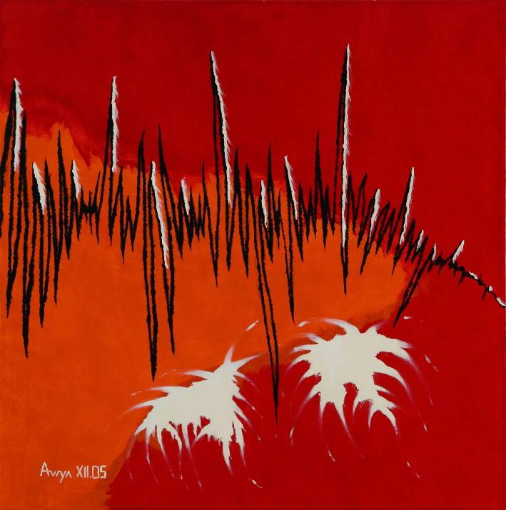Obraz, który widzimy, jest prawdziwą eksplozją kolorów i emocji. Dominują czerwienie i pomarańcze, przeplatane czarnymi i białymi liniami, które wydają się przypominać rytmiczne fale dźwiękowe lub puls życia. Ostre, strzeliste kształty wydają się niemal kłuć w oczy, budując napięcie i dynamikę. Atmosfera jest pełna energii, niemal elektryzująca, jakby obraz miał zaraz eksplodować w nasze twarze. Artysta zastosował technikę kontrastu, by podkreślić emocje i chaos, jaki może panować wewnątrz ludzkiego umysłu. Obraz wygląda jakby coś wybuchło! Taki mocny i zdecydowany styl sprawia, że jest trudny do zignorowania. Również fascynująca jest tu interpretacja - czy to burza emocji, czy może zmagania natury z ludzkością? Nurtujący jest sposób w jaki artysta zręcznie łączy te elementy, tworząc kompozycje, która jest zarówno chaotyczna, jak i harmonijna. Może to przypominać dźwięk muzyki rockowej, pełnej "power", którą czujemy w kościach. Obraz pozostawia odbiorcę z poczuciem niepokoju, ale także fascynacji i ciekawości do zgłębienia tego, co jeszcze się za nim kryje. W sumie - kawał mocnej sztuki, która nie pozostaje obojętna.