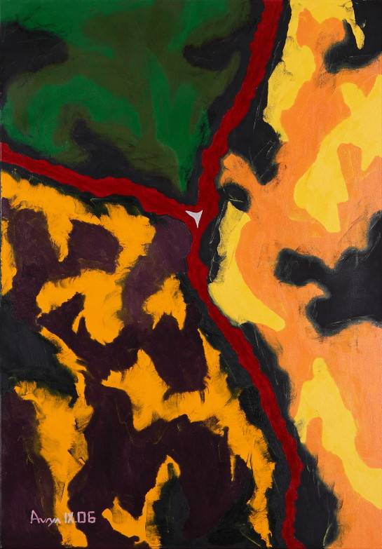 Obraz emanuje energią i żywiołowością, eksplodując kolorami, które przyciągają wzrok. Dominują tu głęboka zieleń, intensywna pomarańcz oraz czerwone akcenty. Wydłużone formy tworzą dynamiczny układ, jakby natura tańczyła w abstrakcyjnej formie. Krzyżowanie się tych intensywnych kolorów sprawia, że patrzymy jak zahipnotyzowani, zastanawiając się, jakie opowieści kryją się pod tą powierzchnią. Atmosfera obrazu jest pełna pasji, wręcz kipi od emocji. Styl artystyczny przypomina trochę ekspresjonizm, z tą intensywnością i ruchliwością, które poruszają nasze wnętrza. Malowanie metodą mieszania kolorów i wyrazistych pociągnięć pędzla tworzy efekt żywego, pulsującego krajobrazu. Dla mnie ten obraz to jak podróż w głąb snu. Czy te kolory to może emocje, które gdzieś w nas buzują? Albo gubię się w tych kształtach, jakbym szukał drogi w dżungli kolorów. Hey, to jakby patrzeć na świat z kalejdoskopu, gdzie każdy przekręcony kawałek tworzy nową rzeczywistość. Opowieści ukryte w tych barwach mogą przywoływać różne emocje. Może to radość z pierwszego dnia wiosny, kiedy wszystko budzi się do życia. Może to chaos naszych myśli, które czasem trudno ujarzmić. Uczucie zagubienia miesza się z fascynacją. Świat zamknięty w tym obrazie to prawdziwe "maze" emocji.