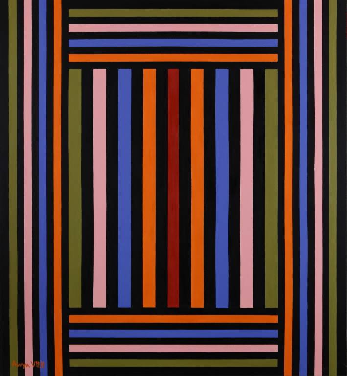 Obraz jest pełen żywych, kontrastujących kolorów. Dominują na nim intensywne pomarańcze, bogate czerwienie, różowe i niebieskie pasy, które tworzą rytmiczny układ wypełniający przestrzeń. Po bokach można dostrzec głębokie zielenie, nadające kompozycji równowagę. Wszystko uporządkowane jest w idealne, prostopadłe linie, co wprowadza poczucie harmonii i porządku. Atmosfera dzieła? Jak dla mnie, to czysta energia! Pełna dynamiki i rytmu kompozycja emanuje nowoczesnością, sprawiając, że czuję się jak w tętniącym życiem city center. Styl artystyczny przywodzi na myśl abstrakcyjny ekspresjonizm z nutą minimalistycznej elegancji. Technika polega na precyzyjnie nakładanych, płaskich kolorowych płaszczyznach, bez zbędnych cieni i detali. To trochę jak kompozycja muzyczna, gdzie każdy kolor gra swoją nutę. Obraz może wywoływać emocje związane z organizacją i porządkiem w chaosie codzienności. "Patrz mamo, tęcza!" powiedziałby pewnie każdy maluch na widok tej palety barw. W tej prostocie zawarta jest też jakaś tajemnica, co sprawia, że chce się do niego wrócić raz jeszcze. To dzieło nie tylko cieszy oko, ale też skłania do refleksji nad rolą koloru w naszym życiu. A wiesz co? Ten obraz ma coś z "vibe" miejskiego graffiti. Prawdziwa uczta dla oka.
