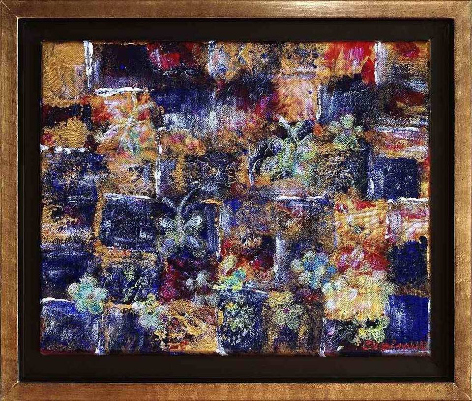 Dyptyk malowany farbami akrylowymi na płótnie, oprawiony w drewniane, złocone ramy.