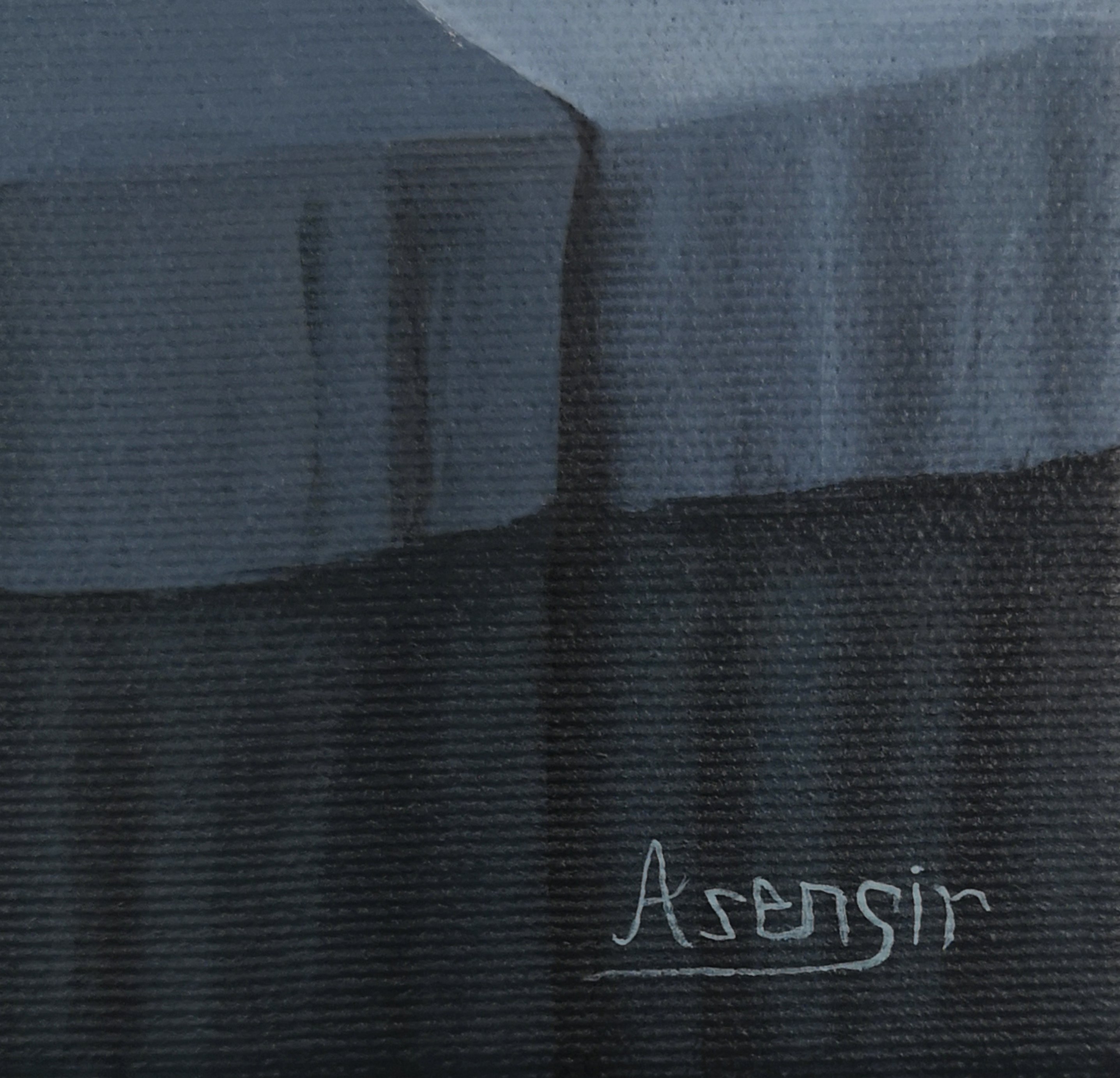 Obraz akrylowy na płótnie bawełnianym, malarstwo surrealistyczne. Praca sygnowana: z przodu - podpis artysty „Asensir”, z tyłu – tytuł / podpis, imię i nazwisko artysty / rok powstania. Praca nie zawiera ramy, boczne krawędzie płótna zamalowane estetycznie na czarno - obraz gotowy do powieszenia. Wymiary: 60x60x2cm. Obrazy artysty są spojrzeniem do świata snów. W pracach z cyklu „Time”, artysta zgłębia naturę czasu, szukając sposobu na pokazanie jego złożoności i iluzoryczności. Kompozycje, portale czy szachownice stają się metaforami naszych wyborów, zmian i miejsc, w których przeszłość, teraźniejszość i przyszłość przenikają się w jedno. „Time” to opowieść o naszych ruchach w ponadczasowej rozgrywce, o próbie uchwycenia ulotności, a zarazem trwałości doświadczeń. Artysta wciąga w świat, w którym czas przestaje być prostą linią — staje się labiryntem, w którym szukamy własnej drogi, naszych szans, straconych chwil. To refleksja o świadomości, o zmianach, o decyzjach, których skutki odczuwamy długo po ich podjęciu — a szachownica pojawiająca się w wielu pracach, to metafora naszych własnych ruchów w niekończącej się partii z czasem, gdzie każde posunięcie może zmienić bieg historii. Prace artysty znajdują się w prywatnych kolekcjach w Polsce oraz m.in. w USA, Japonii, RPA, Niemczech, Hiszpanii, Francji, Izraelu.