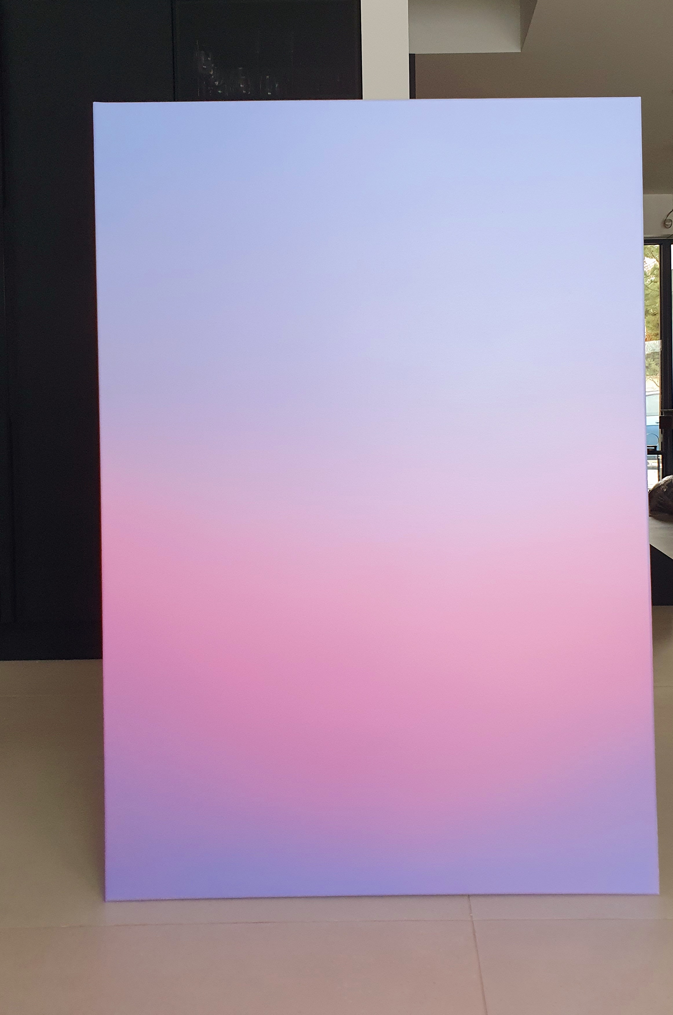Obraz ręcznie malowany z serii "Moje nieba" w wymiarze 130*90. Seria inspirowana wschodami i zachodami słońca. Grubość krosna 2cm. Technika: akryl na płótnie. Boki przemalowane jako kontynuacja w kolorystyce obrazu, nie wymaga ramy. Sygnowany i opisany na tyle obrazu (prawy dolny róg,)