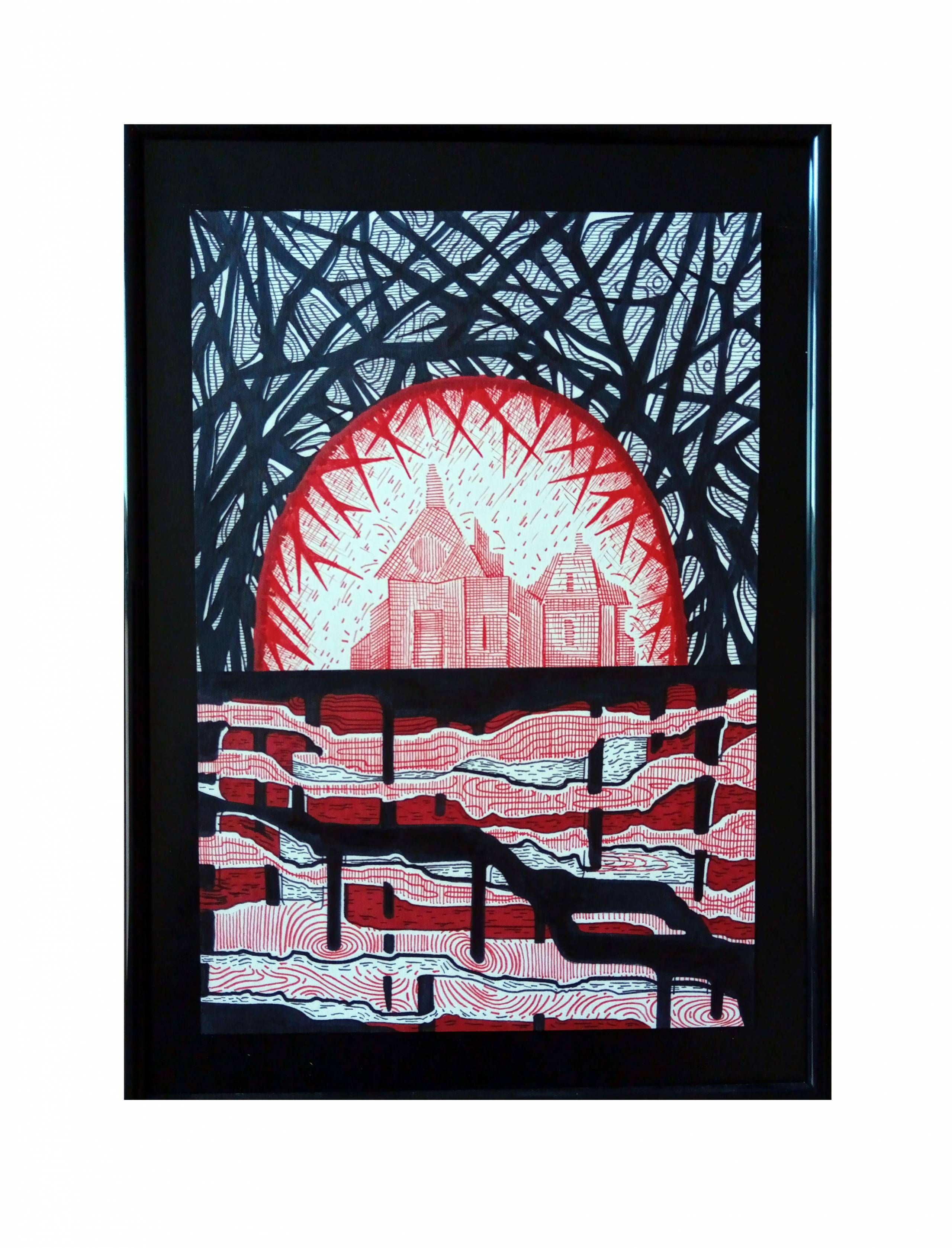 Ilustracja wykonana za pomocą najwyższej jakości materiałów (marker, atrament na papierze). Praca jest oryginalna, sprzedawana wraz z certyfikatem i już oprawiona (czarna ramka pod szkłem). Podane wymiary są wymiarami oprawionej ilustracji. Ilustracja idealnie nadaje się na prezent, można ją od razu po rozpakowaniu powiesić na ścianie.