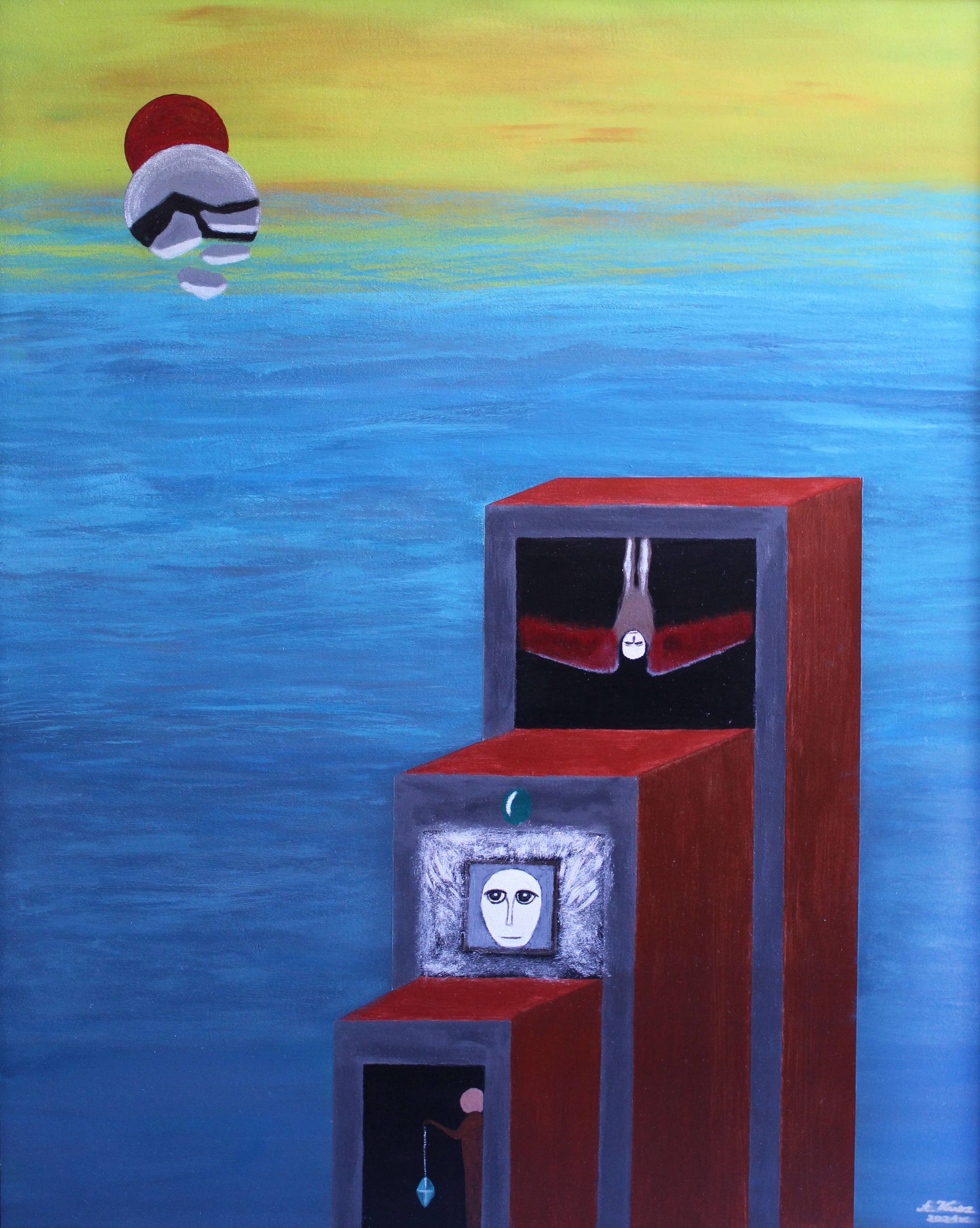 Obraz akrylowy na płycie o wymiarach 68 x 85 cm, oprawiony w czarną, ryflowaną ramę w połysku, o szerokości 2 cm. Wymiar pracy w ramie: 87,5 x 70,5 cm. Praca zawerniksowana na połysk. Sygnowana z tyłu i z przodu: Adam Kucz 06.2021 r.