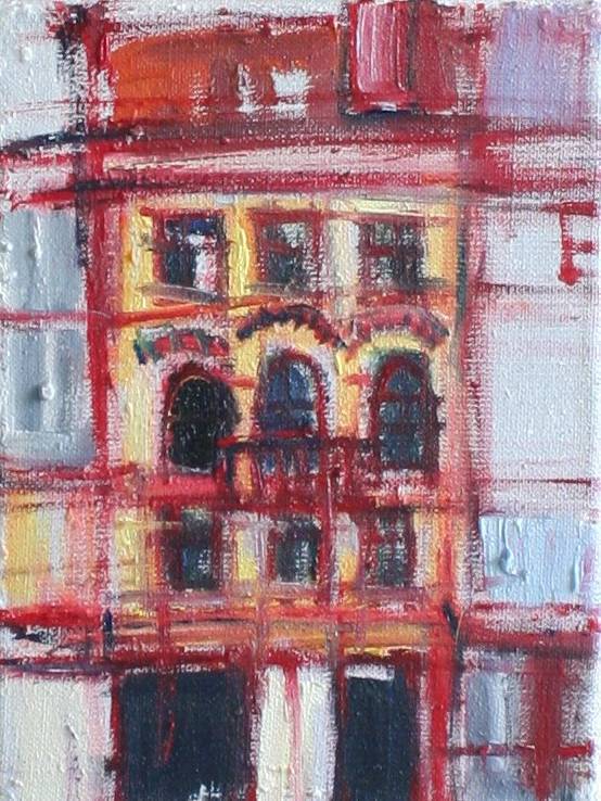 Obraz przedstawia miejską fasadę budynku, który niemalże eksploduje różnorodnością barw. Dominują ciepłe odcienie czerwieni i żółci, które wirują, łącząc się w niepowtarzalny sposób, tworząc lekko rozmyte kształty i linie. Wygląda jakby ktoś patrzył na miasto przez szybę, a krople deszczu mieszały wszystkie kolory razem. Artysta zastosował technikę impasto, nadając teksturze dynamiczny i trójwymiarowy charakter. Czujesz, jakbyś mógł dotknąć każdą nakładającą się warstwę farby. Atmosfera tego dzieła jest pełna energetycznego ożywienia, jakby miasto żyło własnym rytmem i tętniło wewnętrznym pulsowaniem. Patrząc na obraz, można poczuć radosne zamieszanie i codzienną gonitwę miejsca pełnego życia. Myślę sobie, że to obraz o marzeniach. Jakby miasto szeptało swoje sekrety każdemu, kto zdecyduje się je odkryć. Ten styl jest spontaniczny, wręcz nieco chaotyczny, odzwierciedlający wolność i swobodę twórczą artysty. Linie są niedopowiedziane, jakby autor chciał zostawić coś wyobraźni widza. Obraz może prowokować różne emocje, od nostalgii za pięknem miejskiego krajobrazu, po ekscytację i chęć przeżycia własnej przygody w sercu miasta. A wiesz co, ja lubię takie obrazy, bo jak na nie patrzę, to czuję się jakbym był w magicznej krainie, pełnej tajemnic. I tak to City właśnie wygląda, dynamicznie, zaskakująco. Każdy kąt tego obrazu skrywa coś nowego, co warto odkryć.