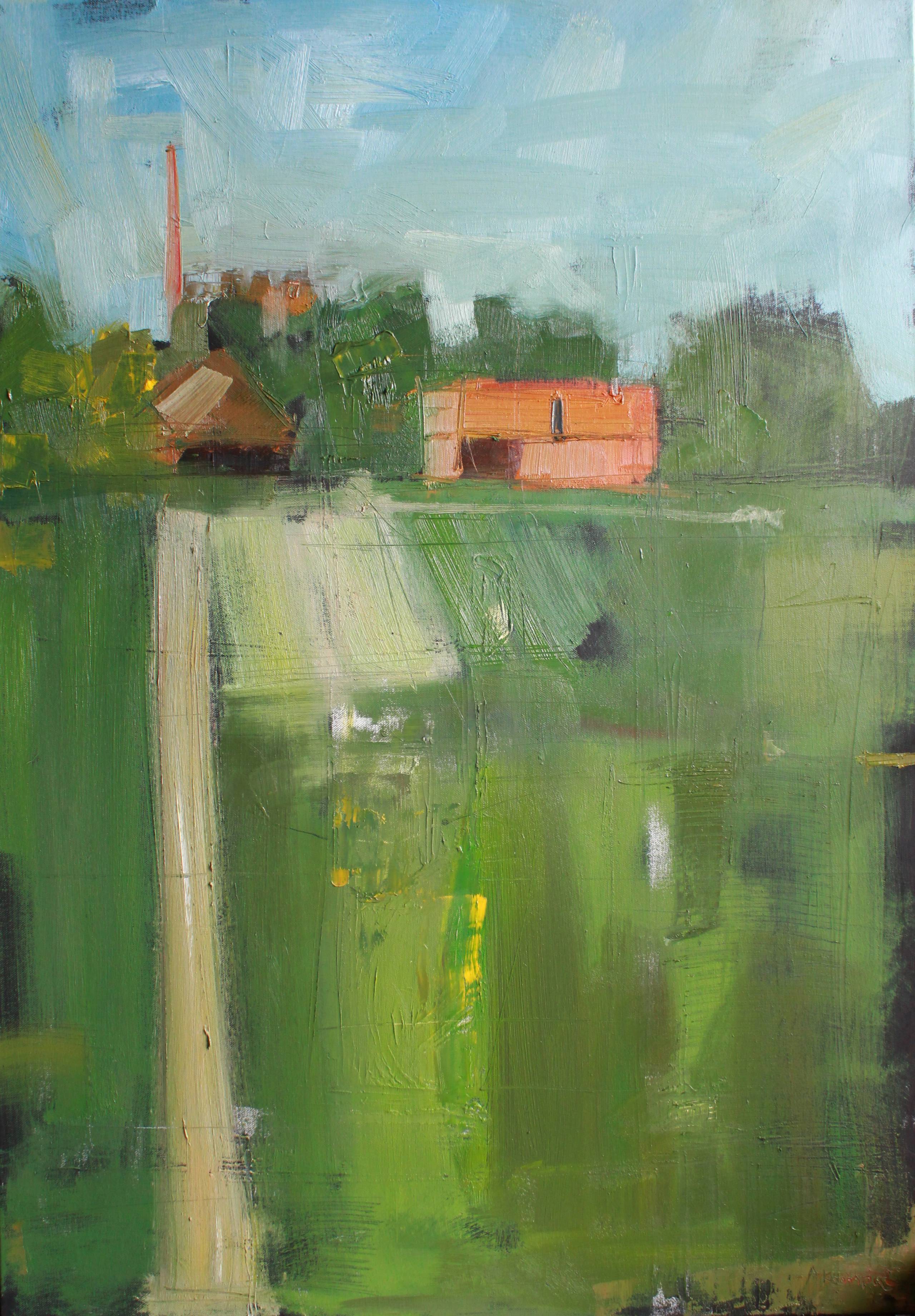 Na obrazie dominuje spokój, zwany czasem calmness, dzięki miękkim, rozmytym pociągnięciom pędzla. Kolorystyka jest prosta: soczysta zieleń traw kontrastująca z jasnym niebem. Kompozycja opiera się na podziale płótna na dwie części – dolna, zielona przestrzeń przenika się z pastelowym błękitem nieba. Budynki wyróżniają się ciepłymi odcieniami pomarańczu, które delikatnie wybijają się na tle demanke natury. Nastrój przypomina późne letnie popołudnie, gdy czas zwalnia, a wszystko wokół staje się beztroskie. Artysta zastosował techniki impastu, które dodają obrazowi tekstury i dynamiki. Kąty i linie są lekkie, ale zdecydowane. Wzrok przyciągają drobne detale i kręte ścieżki. Obraz wywołuje emocje nostalgii, spokoju oraz tęsknoty za wsią, za chwilami wytchnienia od miejskiego zgiełku. Wygląda to tak, jakby ktoś przechadzał się po cichej, puchatej łące. No i domy tam są, taki jeden, co ma komin. Odbiorca może poczuć się zatopiony w tym sielankowym krajobrazie, marząc o własnej podróży na łono natury.
