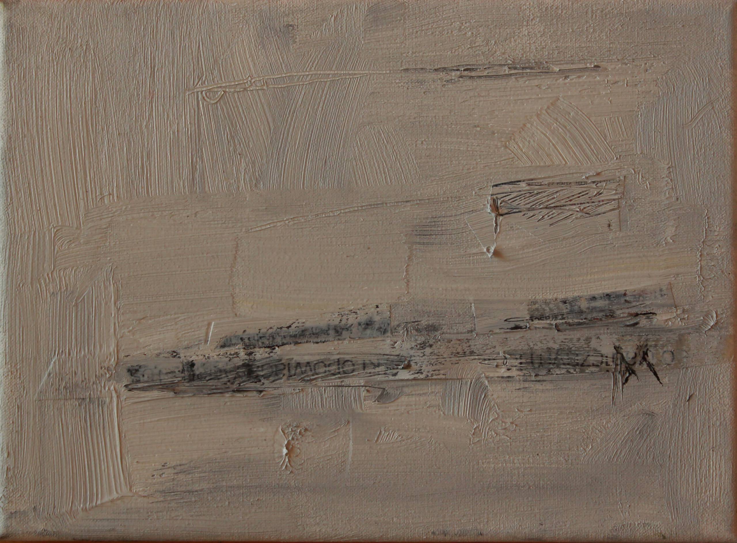 Obraz emanuje subtelnością i delikatnością kolorów. Dominuje ciepły beż, z delikatnymi smugami bieli i szarości. Kompozycja jest minimalistyczna, z wyraźnie widocznymi przetarciami i zaschniętymi smugami farby, tworzącymi fakturowe warstwy. Atmosfera jest spokojna, nieco melancholijna, jakby czas się zatrzymał. Artysta użył techniki impasto, gdzie grubo nakładane farby nadają płótnu dynamiczności i surowości. Jest coś bardzo tactile (dotykowego) w tej pracy, co sprawia, że chce się jej dotknąć. Patrząc na ten obraz, można poczuć nostalgia za utraconym czasem. Te delikatne, niemal efemeryczne linie mogą przypominać delikatne ślady życia, wspomnienia zatrzymane na chwilę. Dla dziecka byłyby to linie na piasku, które wiatr szybko rozwiewa. Obraz może wywołać refleksję na temat przemijalności czy harmonii w prostocie. Jednocześnie, jest coś kojącego w jego niezmienności, jakby chciał powiedzieć: "jesteś tu, w tej chwili, i to się liczy". Unikalny styl, który łączy abstrakcję z namacalnością, zachęca do kontemplacji i osobistej interpretacji.