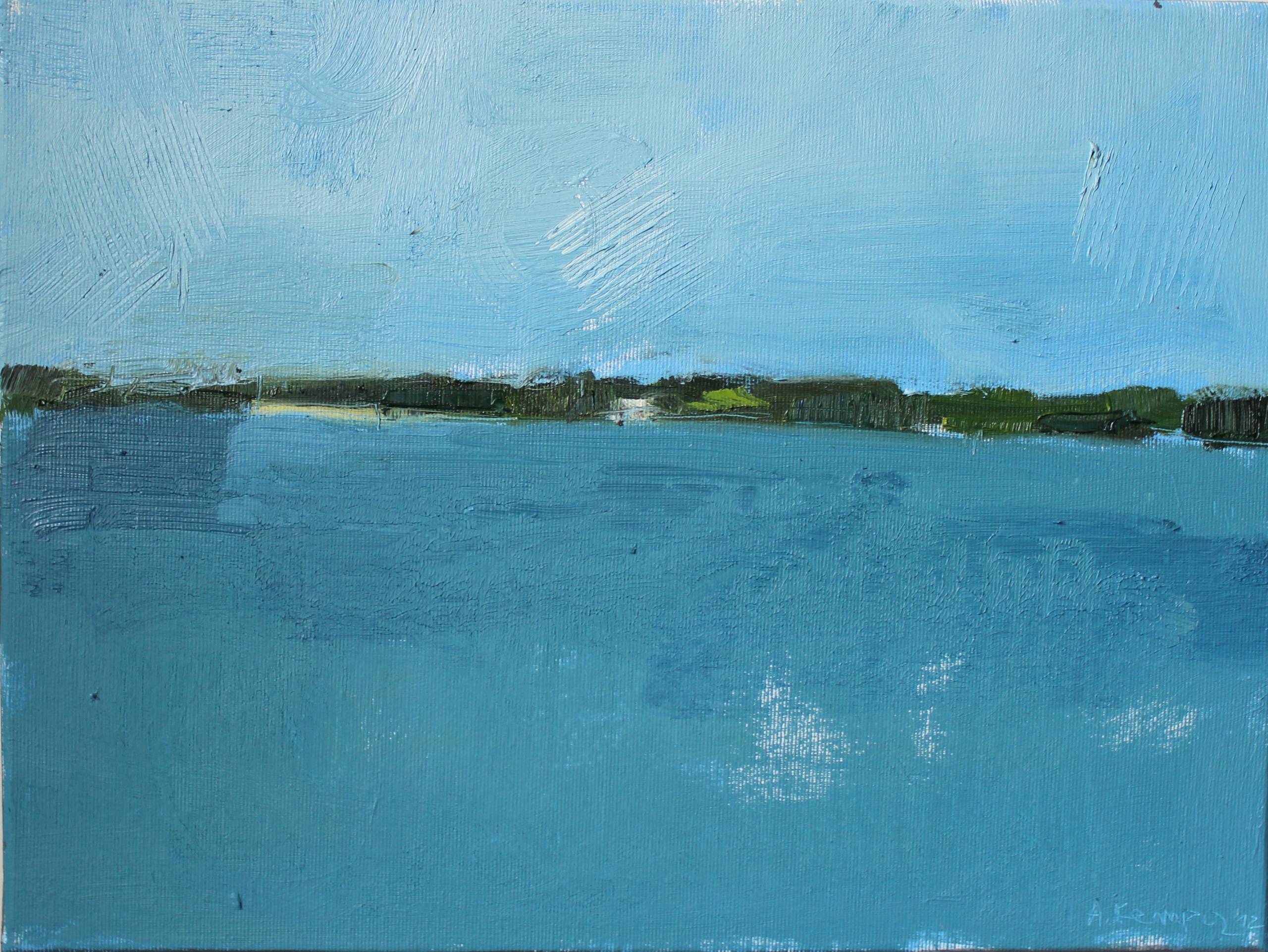 Obraz emanuje spokojem, jak ciche jeziorko w środku lata. Dominują tu odcienie błękitu, zieleni i nieba, które przeplatają się ze sobą w subtelny sposób, tworząc delikatny nastrój relaksu. Kompozycja jest prosta, lecz pełna ukrytego uroku. Na horyzoncie widzimy delikatne smugi zieleni, przypominające zarys linii drzew, które delikatnie kontrastują z większą przestrzenią wody. To jakby mały sen na jawie. Artysta używa grubo nałożonej warstwy farby, co nadaje obrazowi teksturę i charakter. Technika ta pozwala dostrzec pewne imprefekcje, które dodają autentyczności. Można by powiedzieć, że to "pure bliss" na płótnie. To przypomina mi czas, kiedy mama zabrała mnie nad jezioro i zbierałem kamyki. Obraz przywołuje uczucie zatrzymania czasu, momentu, w którym można zapomnieć o codziennych troskach i po prostu być. Kiedy patrzysz na te falujące linie, może poczuć się, jakby morska bryza delikatnie muskająca twoją twarz. Czujesz to? Zastanawiam się, co mogło inspirować artystę. Może właśnie takie chwile spokoju, które sprawiają, że świat wydaje się prostszy.スタイルティッシュと意図のストーリーが織り成すハーモニーは、まるで言葉のアートのように美しいです。