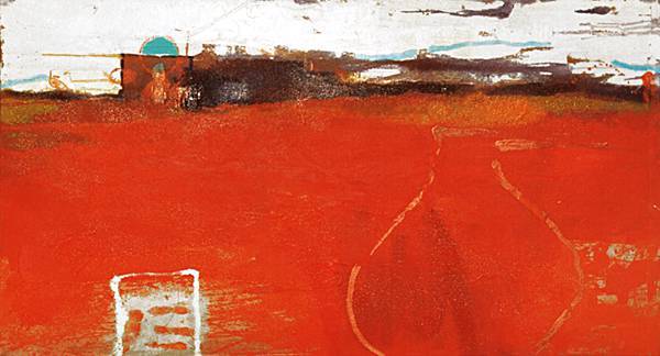 Obraz jest odważnym eksperymentem z kolorem i teksturą. Dominują tutaj głębokie czerwienie, które eksplodują przez całą kompozycję, nadając jej intensywność i żywiołowość. Horyzont zdaje się przesiąknięty chłodniejszymi tonami, brązami i odcieniami niebieskiego. Biała forma przypomina dziecku piasek na plaży, a w głębi widać tajemnicze kształty przypominające sielankowy krajobraz. Tak, jakby ktoś próbował zamknąć lato w butelce. Czy to wazon? Nastrój dzieła jest trochę melancholijny, trochę dreamy, a może nawet pełen nostalgii. Styl artystyczny wydaje się inspirowany abstrakcyjnym ekspresjonizmem. Artysta wykorzystuje grube pociągnięcia pędzla, które tworzą dynamiczną fakturę. Każdy kolor tu jest jak uderzenie emocji, a całość ma jakąś surową prostotę. Technika ta nadaje całości spójności, pomimo pozornej chaotyczności. Patrząc na to, można poczuć palące słońce na twarzy i szept wiatru. Obraz prowokuje myśli o przeszłości i wspomnieniach letnich dni. To jak zatrzymany w czasie fragment rzeczywistości. Tak, ten obraz jest po prostu "vivid". Mnie przypomina o wakacjach z dzieciństwa. Kto wie, co jeszcze można w nim dostrzec?