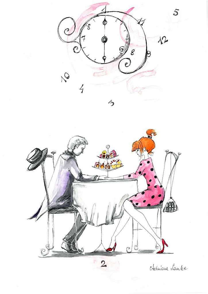 "Wspólnie zatrzymujemy czas" obraz akwarelami oraz piórkiem wykonany na białym 300g papierze A3. Praca sygnowana.