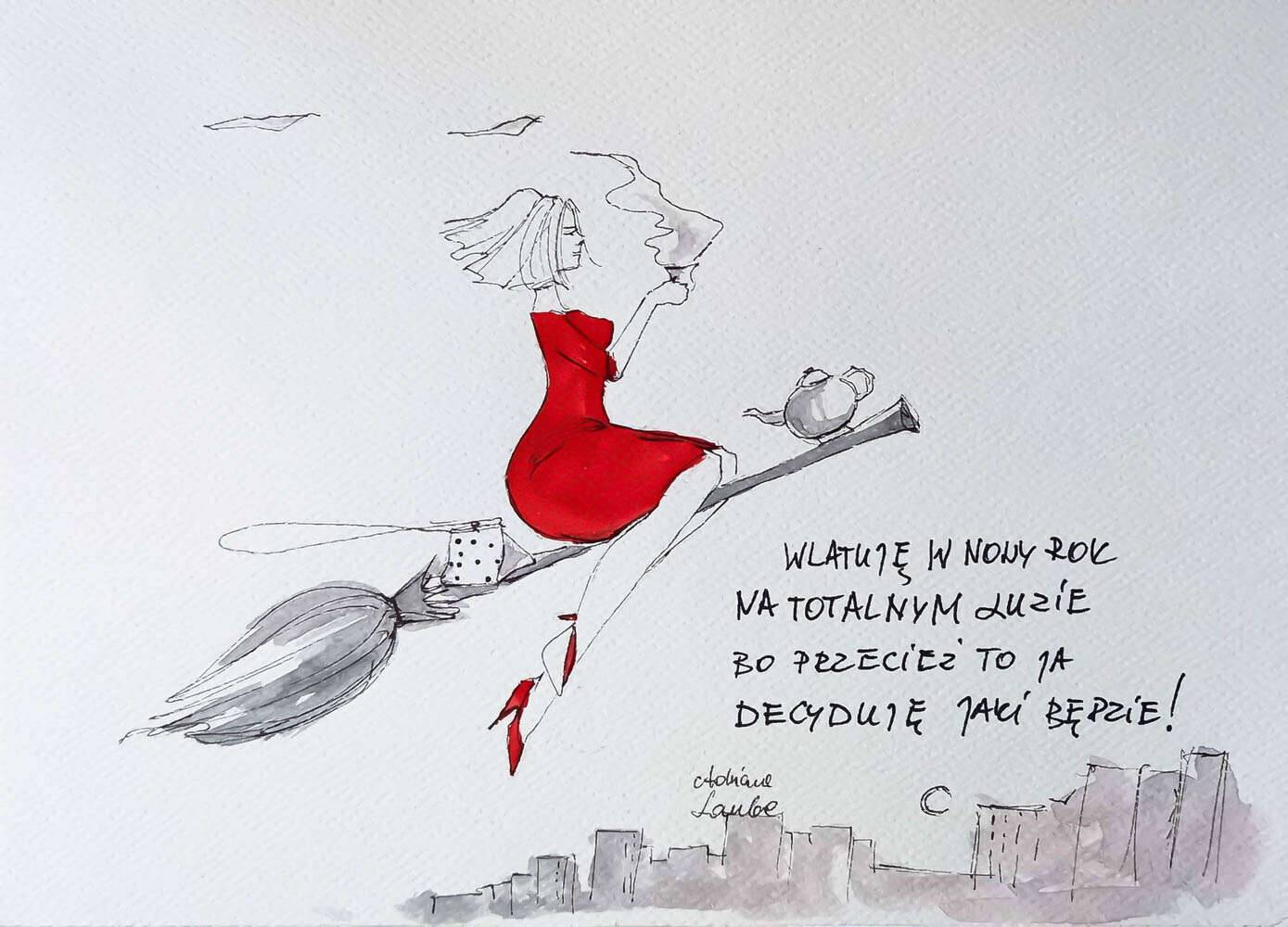 "To ja decyduję!" praca akwarelami i piórkiem wykonana na białym 300g papierze A3 (42cm x 30cm).