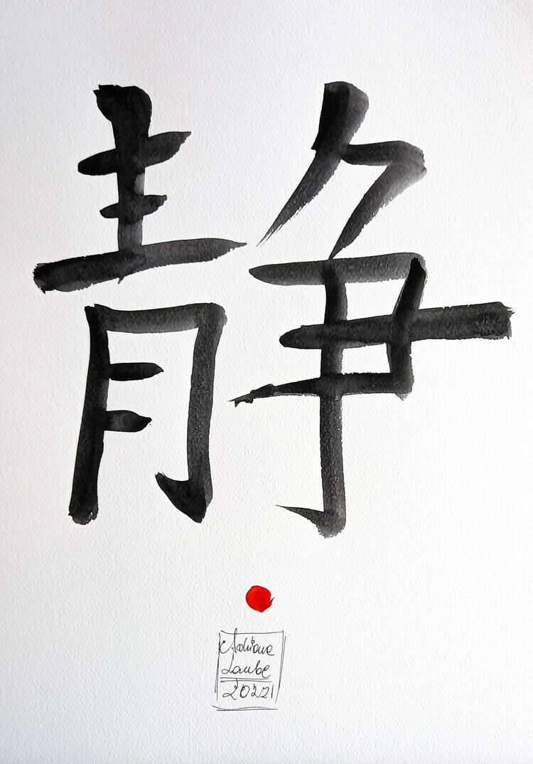 "Chiński Znak Spokoju" chińska kaligrafia akwarelami wykonana przez artystkę plastyka Adrianę Laube na białym 300g papierze A3 (42cm x 30cm). Chińskie znaki mają to do siebie, że nie są tylko wyrazem, słowem. Stoi za nimi cała sztuka kaligrafii, która jest medytacją. Praca sygnowana.
