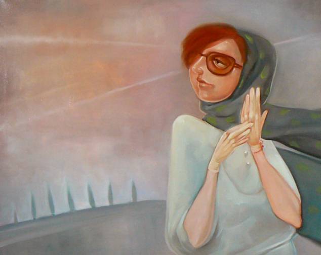 Obraz przedstawia postać kobiety z delikatnym uśmiechem i tajemniczym spojrzeniem. Wokół niej unosi się subtelna mgiełka pastelowych kolorów — od ciepłego brzoskwiniowego po chłodny błękit. W tle można dostrzec niewyraźny zarys drzew, które przypominają sylwetki kaktusów na pustyni. Artystka zastosowała miękkie, płynne pociągnięcia pędzla, co nadaje dziełu niemal oniryczny charakter. No i ta chustka - zupełnie jak z filmu, kręci się w powietrzu, nadając dynamiki spokojnemu obrazowi. Atmosfera obrazu jest spokojna i refleksyjna, a jednocześnie kryje w sobie nutkę tajemnicy. Czujesz, jakbyś patrzył na kadr zatrzymany w czasie, moment, w którym postać zanurzona jest w myślach albo czeka na coś nieuchwytnego. Artystka posłużyła się subtelną grą światła i cienia, co wzmacnia wrażenie głębi i intymności. Obraz może budzić różnorodne emocje. Może to być nostalgia, poczucie tęsknoty za czymś utraconym. A może to tylko zwykła radość z chwili, która za moment przeminie. Wygląda jak obraz „dreamy”, który wciąga cię do innego świata. Dzieciak mógłby powiedzieć: „Lubię kolorowe chustki!”. Myśli się tutaj mieszają, zarówno w tonie formalnym, jak i całkiem swobodnym, tworząc spójną całość refleksji nad pięknem chwili.