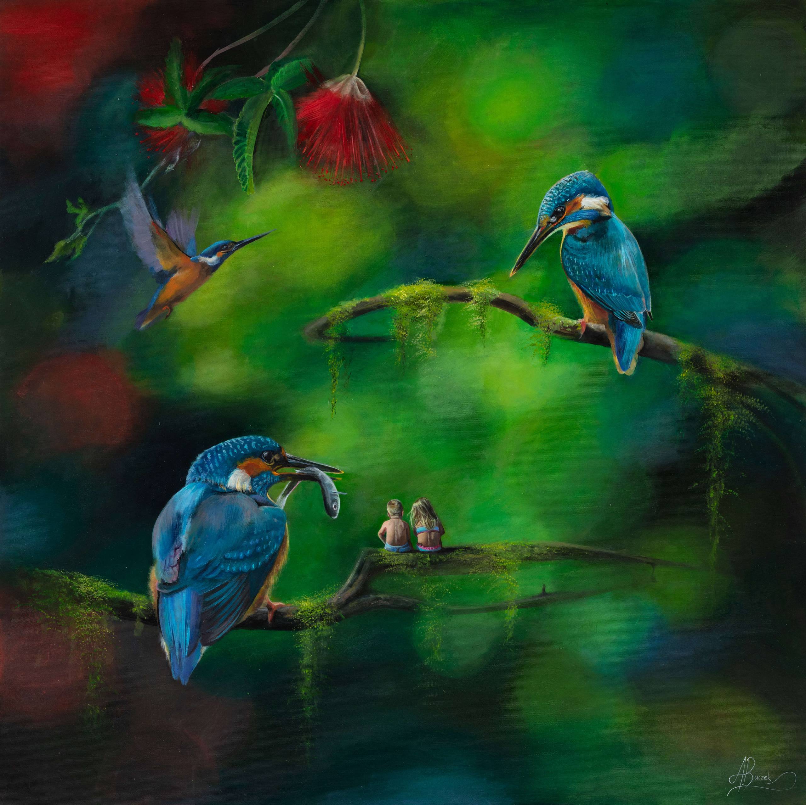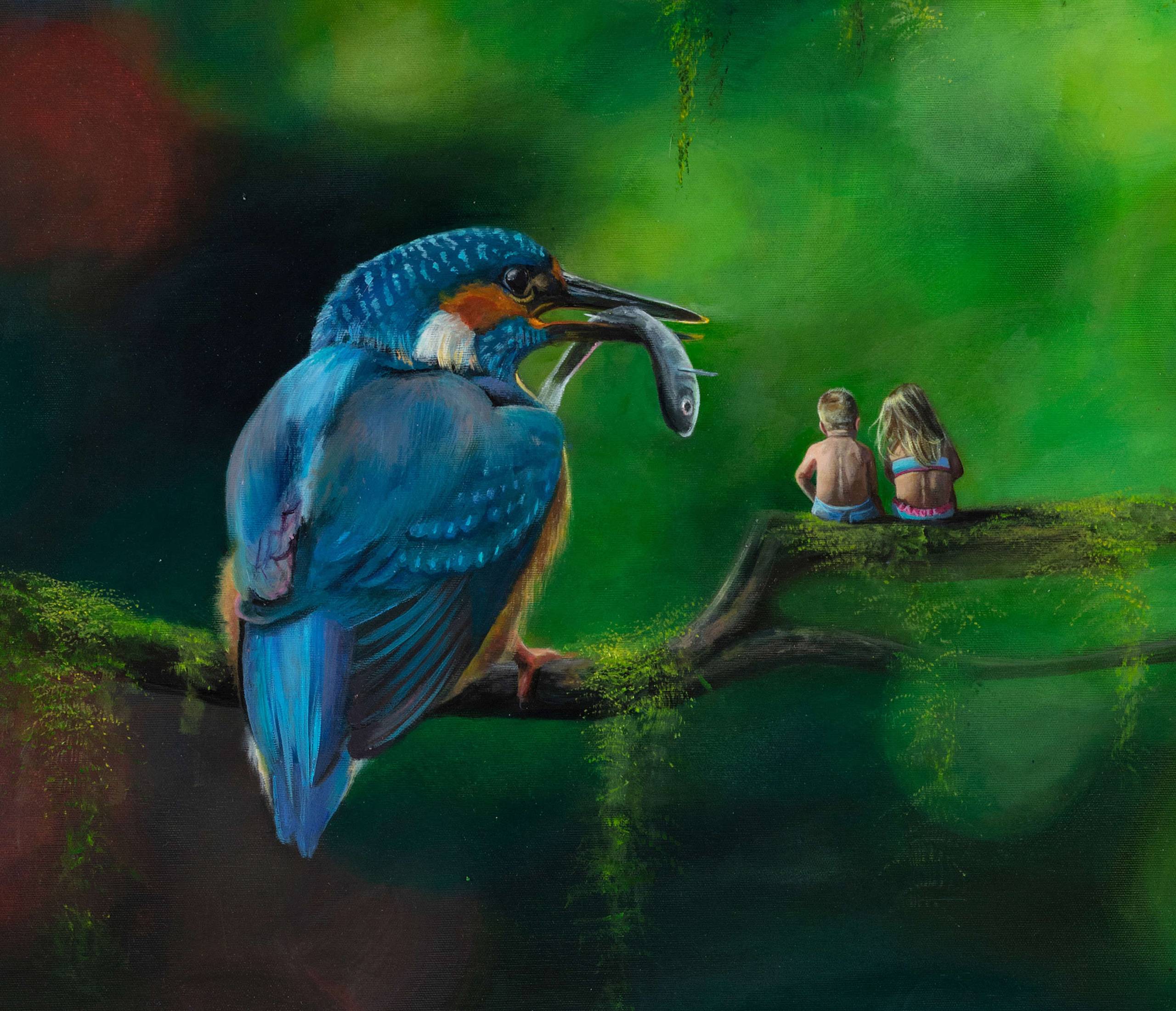 Surrealistyczny obraz na grubym płóciennym podobraziu. Praca nie wymaga oprawy, gdyż boczne krawędzie są zamalowane i są kontynuacją obrazu. Praca zawerniksowana satynowym werniksem, gotowa do zawieszenia na ścianie. Obraz sygnowany w prawym dolnym rogu monogramem artysty /A.Buczek. "Wspomnienie wakacji" to surrealistyczna podróż do upalnego lata, pełnego dziecięcej, spontanicznej radości i marzeń.
