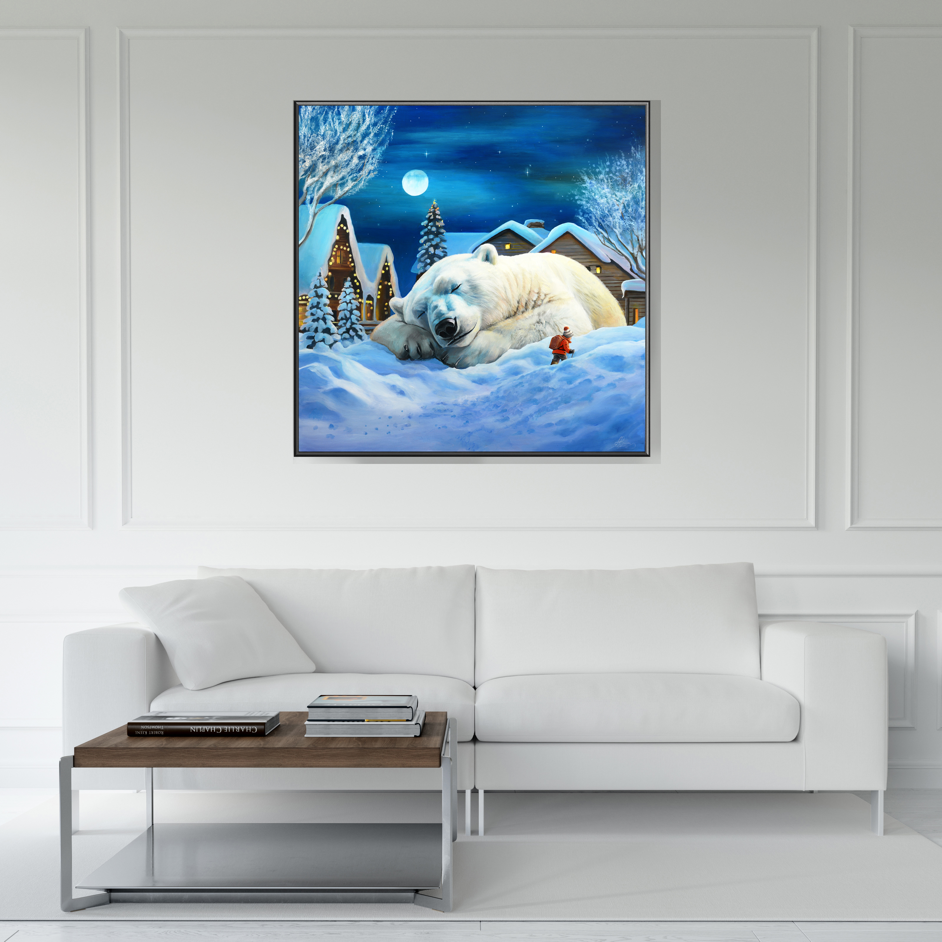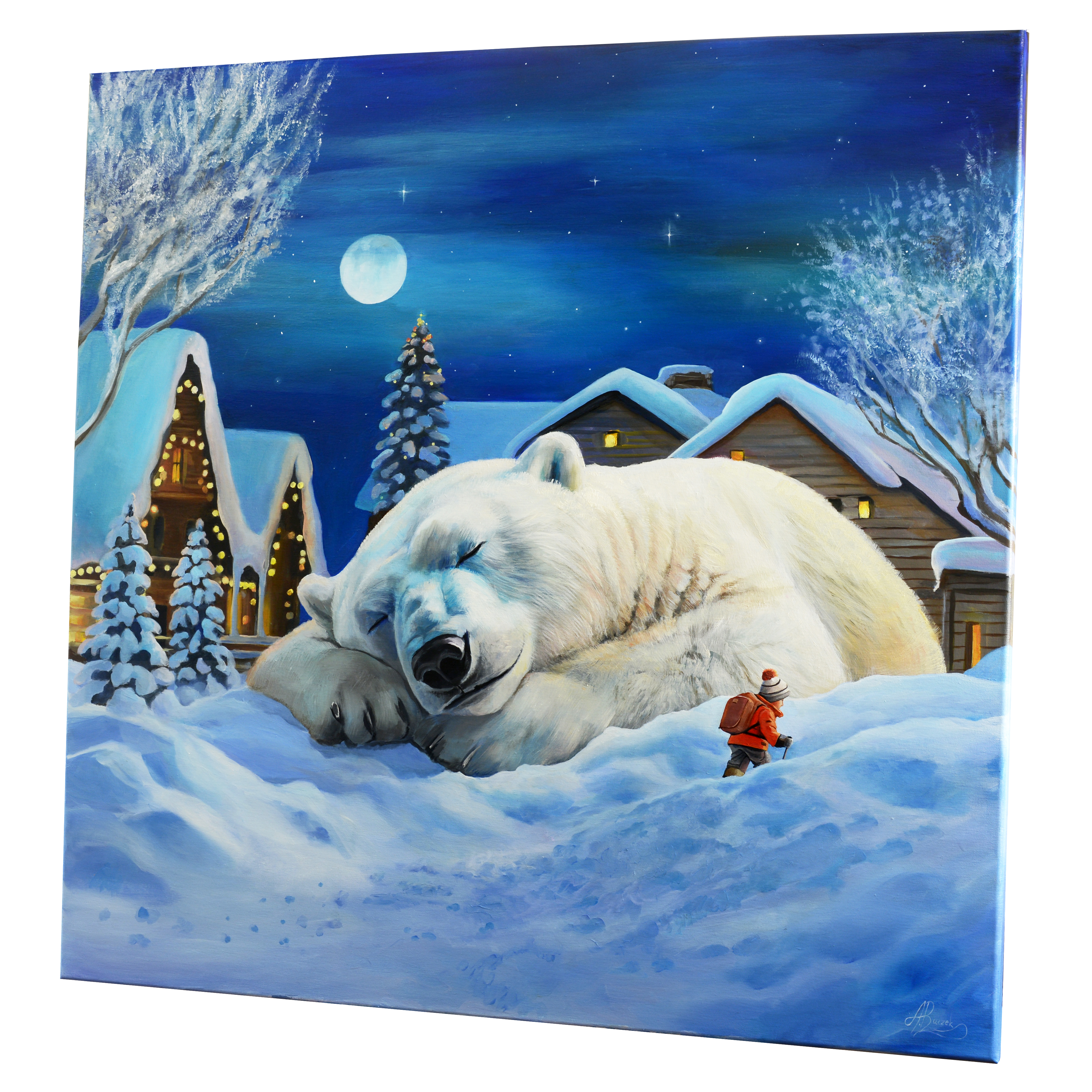"Spokojna noc" to surrealistyczny obraz wykonany w 2023 roku. Poczuj magię, usłysz ciszę i ogrzej się w cieple atmosfery tej zimowej nocy. Powstał on na płóciennym podobraziu naciągniętym na blejtramę z wykorzystaniem farb olejnych. Obraz posiada zamalowane boki i jest gotowy do zawieszenia na ścianie w ramie, lub bez niej. Użycie najwyższej jakości materiałów oraz późniejsze zawerniksowanie gotowego dzieła, daje mu niezwykłą trwałość na długie lata. Każdy obraz powstaje tylko raz, jest jedyny i niepowtarzalny. Oryginalne dzieła poza walorami estetycznymi i głębokim przekazem, posiadają wysoką wartość kolekcjonerską.