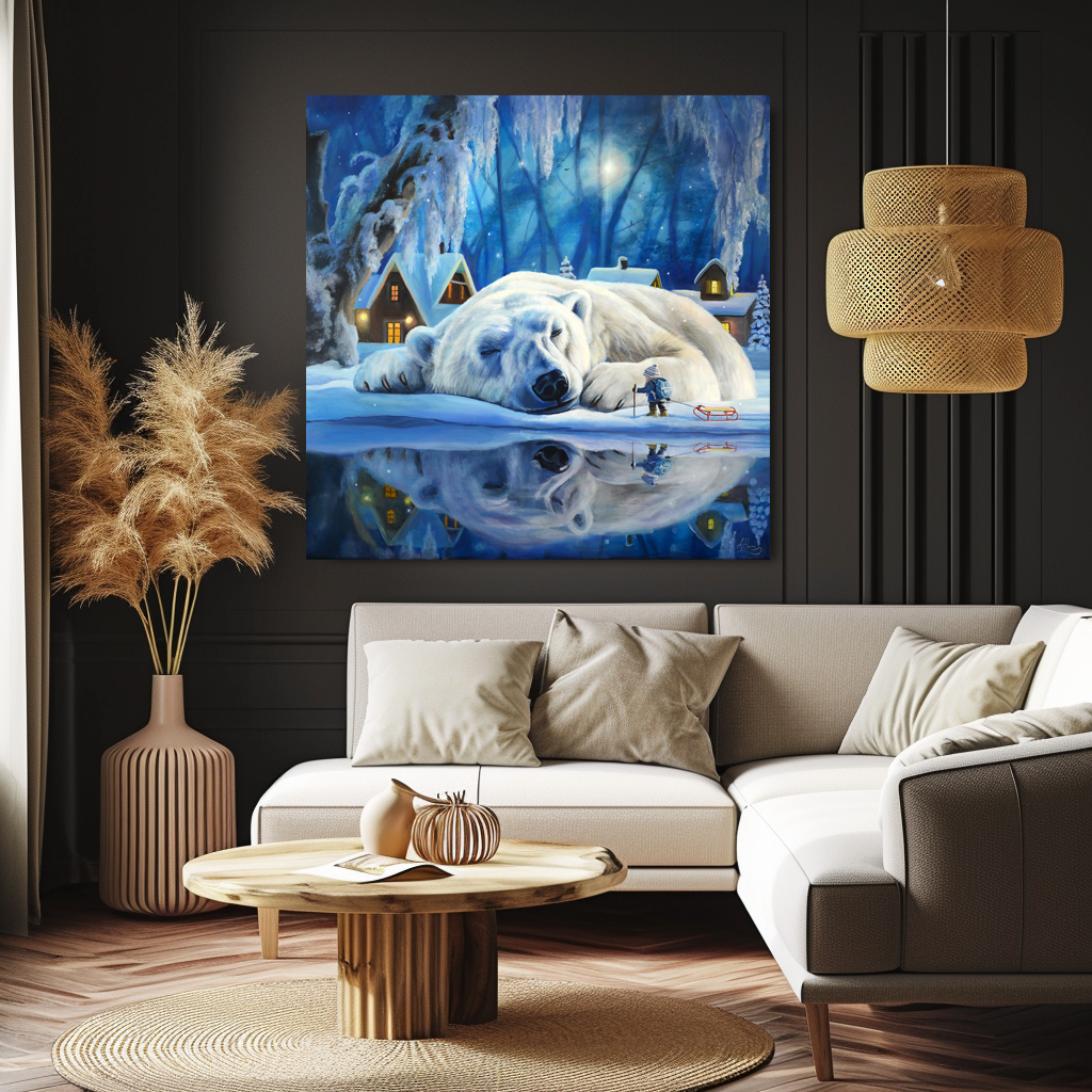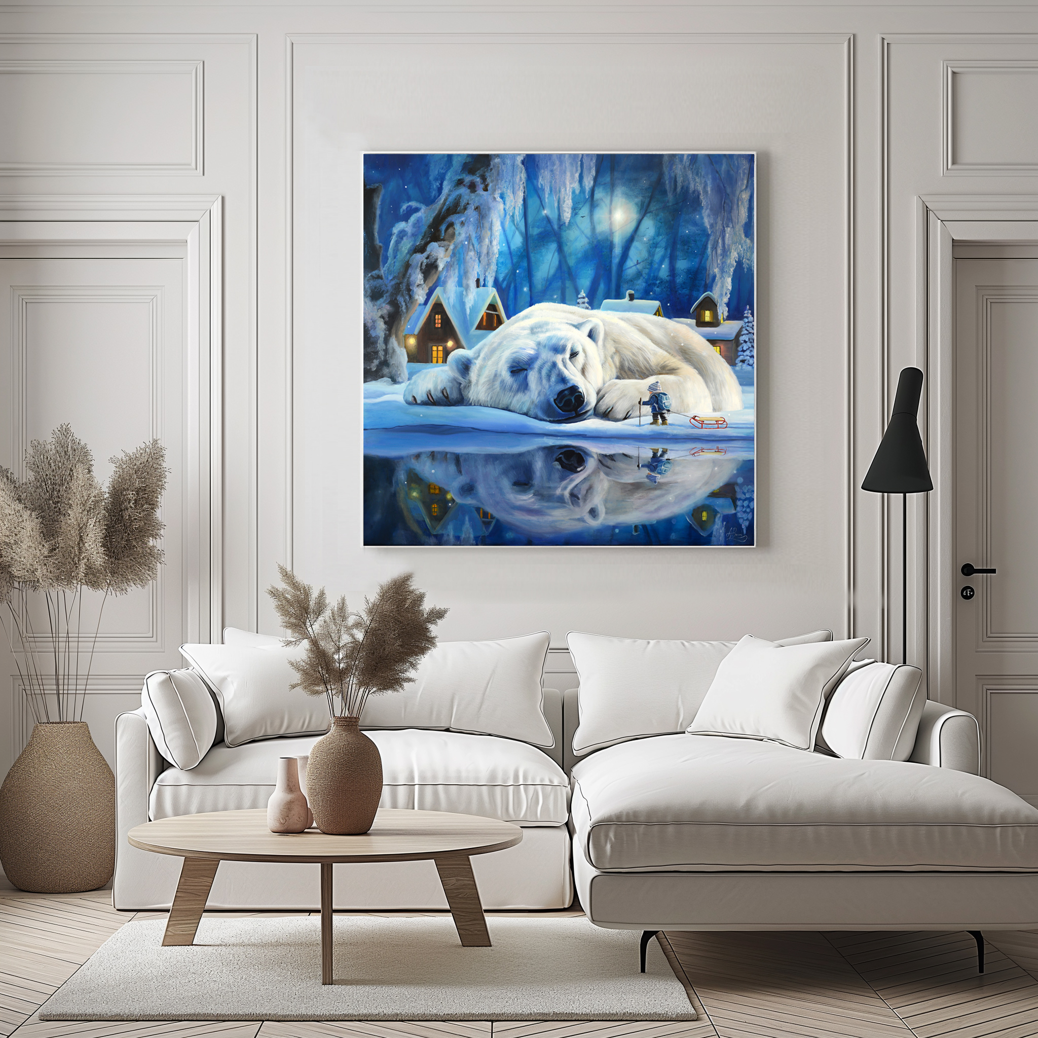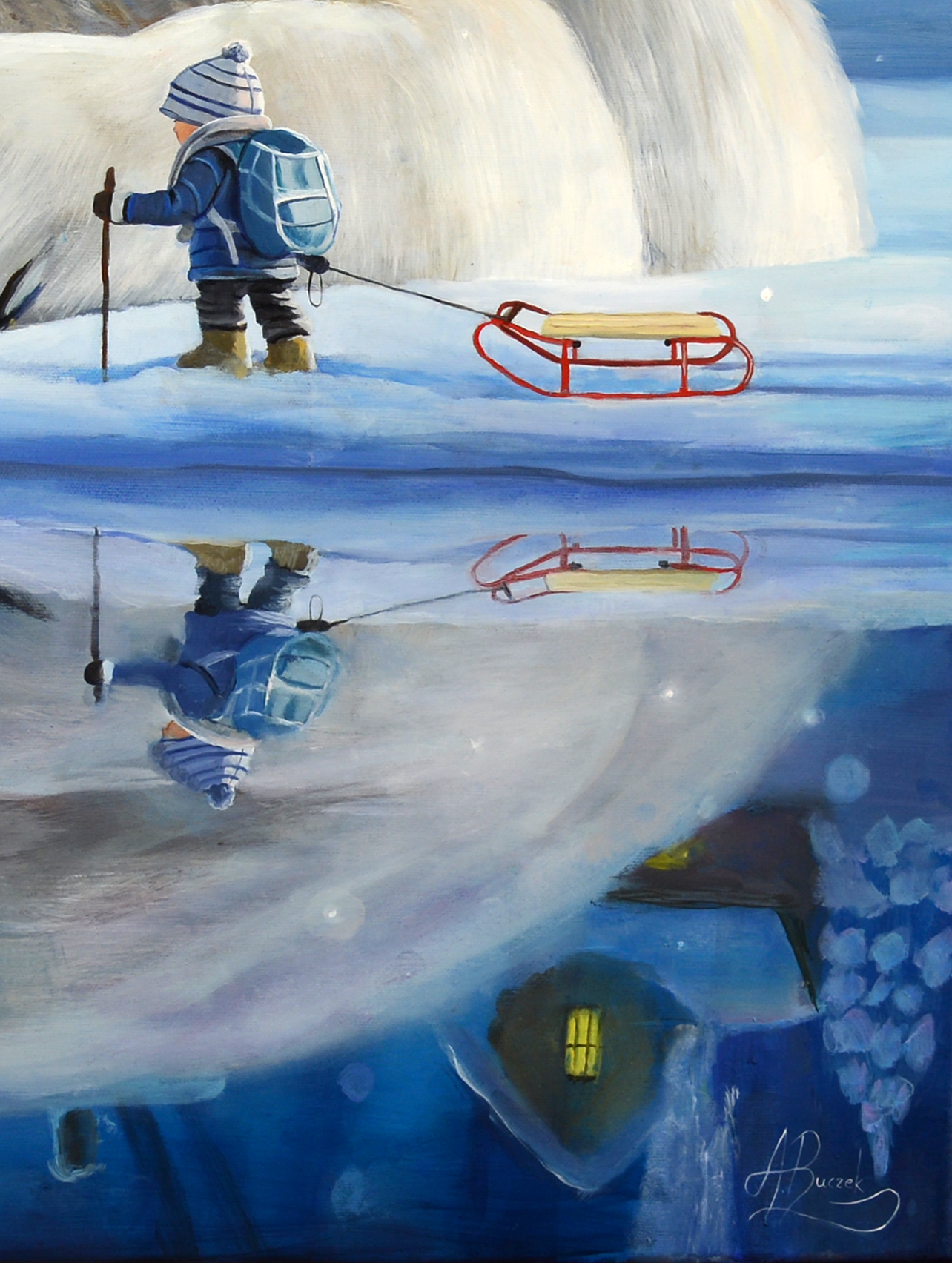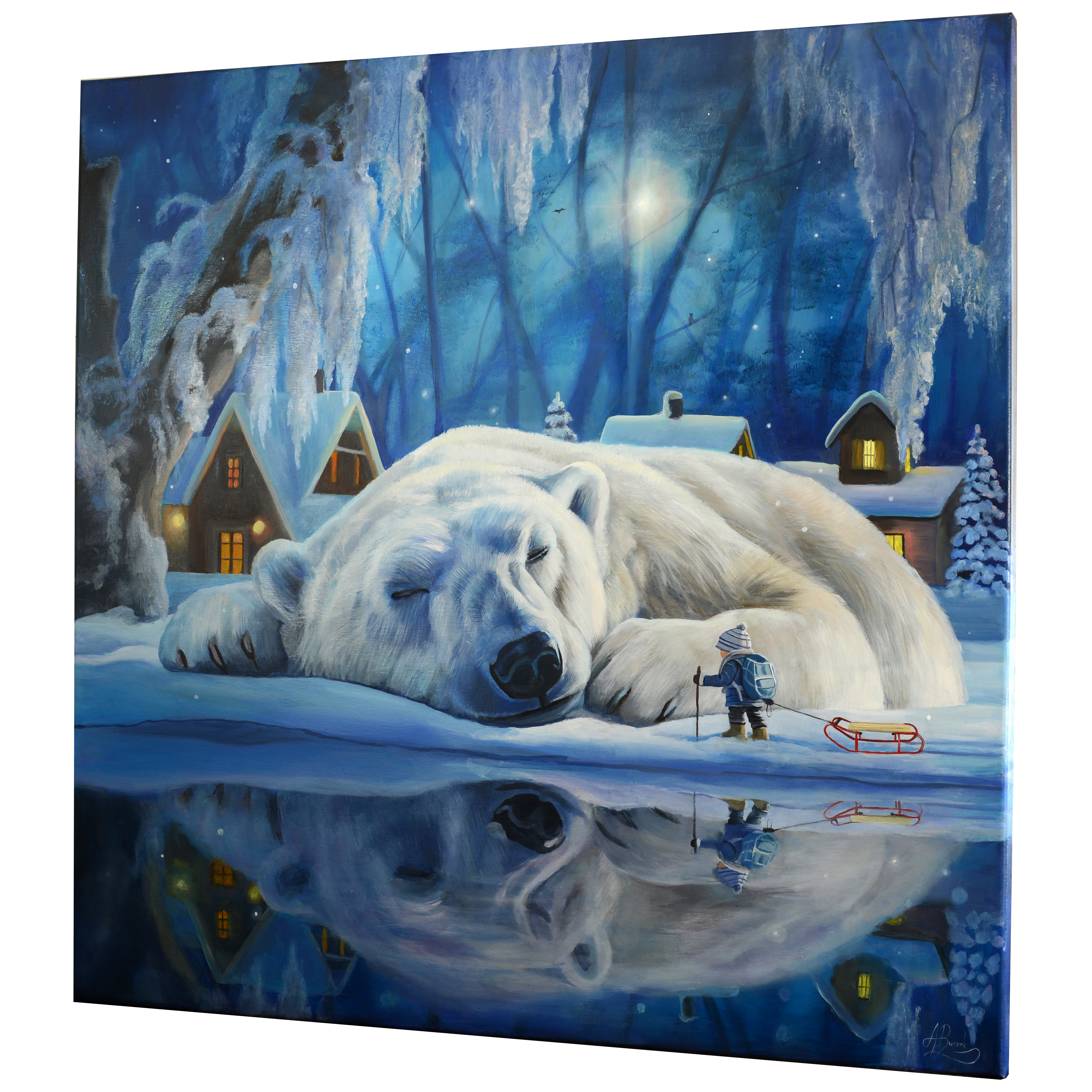 "Cisza i spokój" to surrealistyczny obraz wykonany w 2024 roku. Udaj się w tę nieoczywistą wyprawę, poczuj spokój, zanurz się w ciszę. Pozwól sobie na odkrycie tej zimowej krainy. Obraz został wykonany w niebieskiej kolorystyce, z zdecydowaną grą światła. Dobrze się prezentuje nawet w bardzo ciemnych wnętrzach. Powstał on na płóciennym podobraziu naciągniętym na blejtramę z wykorzystaniem farb olejnych. Obraz posiada zamalowane boki i jest gotowy do zawieszenia na ścianie w ramie, lub bez niej. Użycie najwyższej jakości materiałów oraz późniejsze zawerniksowanie gotowego dzieła, daje mu niezwykłą trwałość na długie lata. Każdy obraz powstaje tylko raz, jest jedyny i niepowtarzalny. Oryginalne dzieła poza walorami estetycznymi i głębokim przekazem, posiadają wysoką wartość kolekcjonerską.