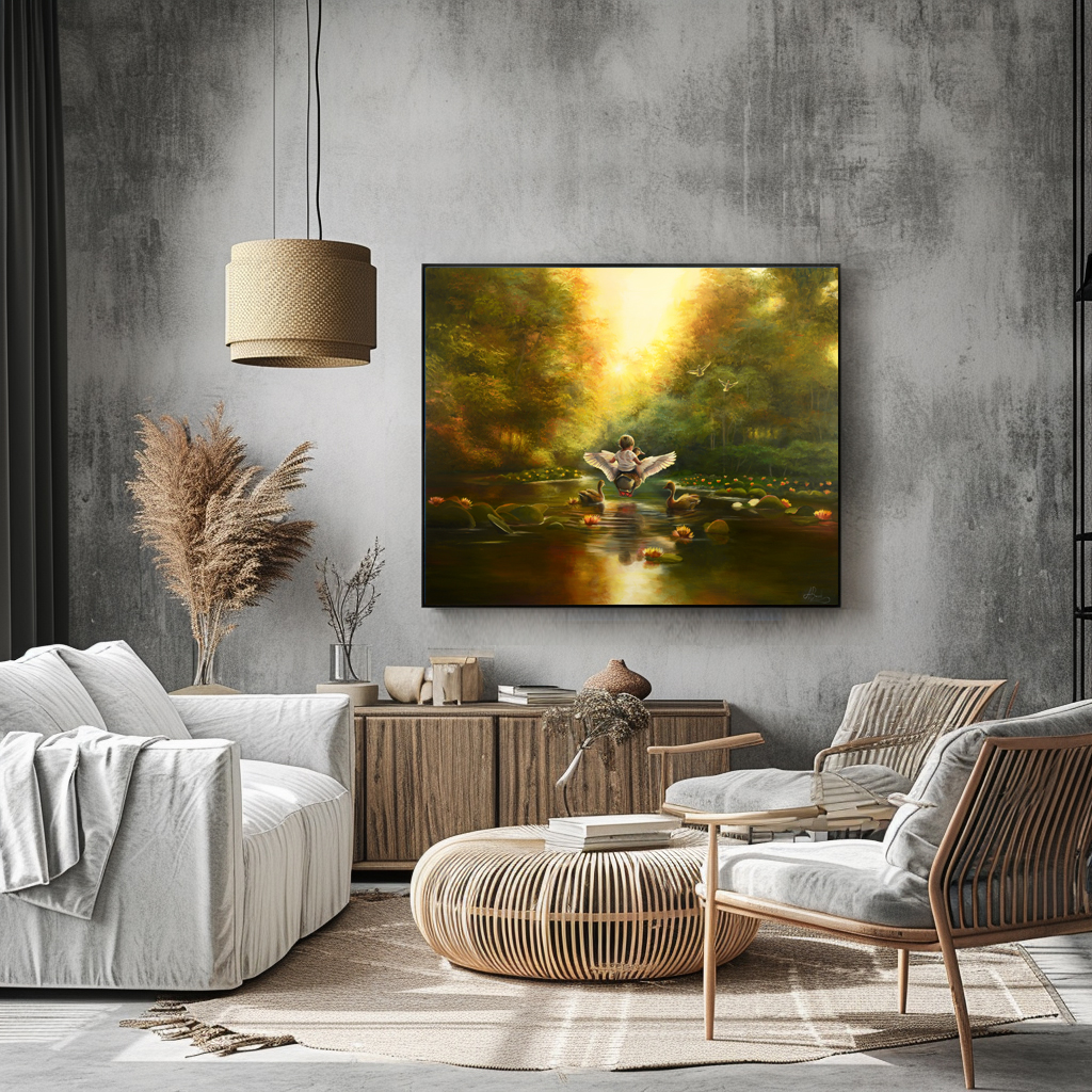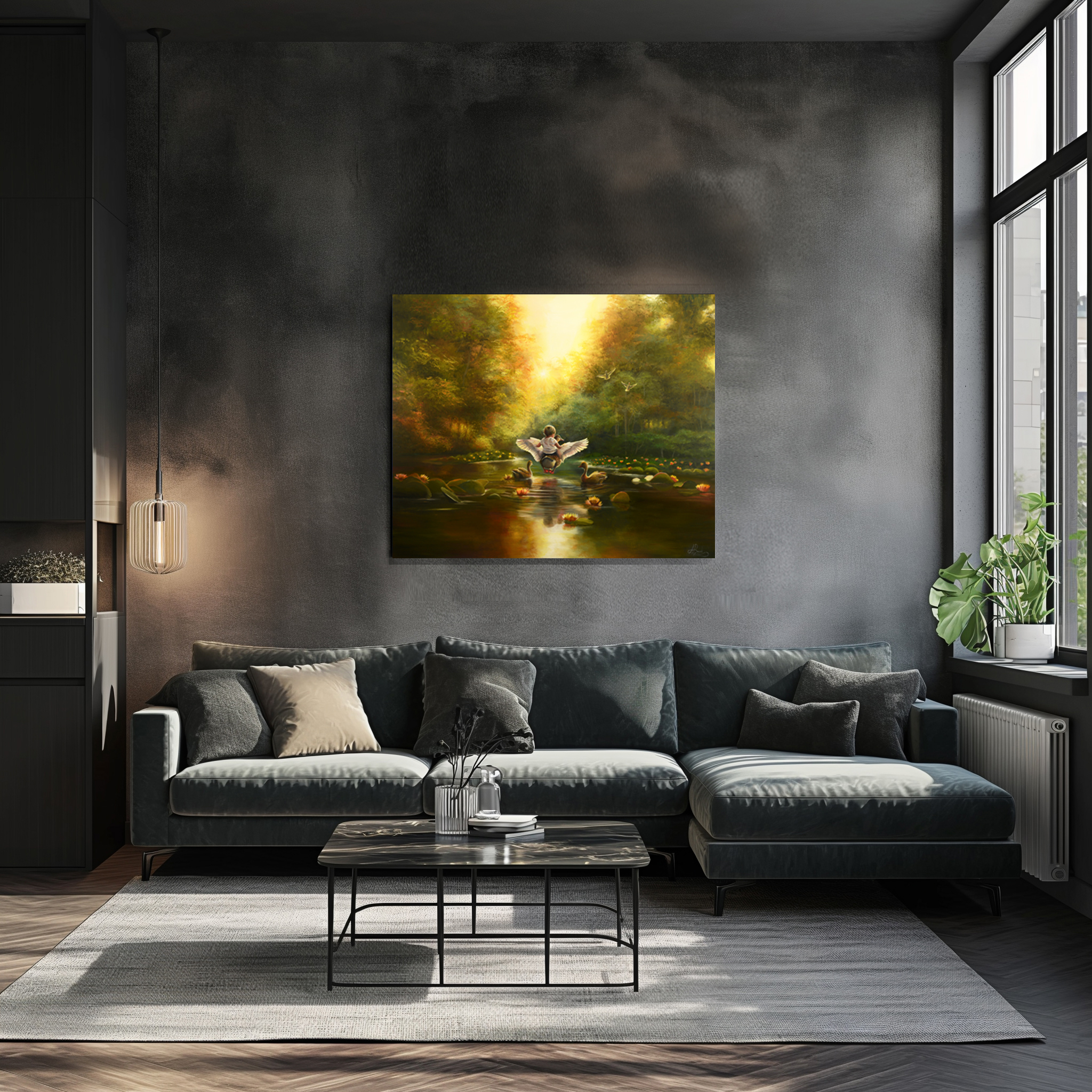 To pejzaż w złocistych barwach, który przenosi nas do miejsca, gdzie wszystko jest możliwe, gdzie można popłynąć w dowolną stronę i uwolnić się od wszystkich ograniczeń. Powstał on na płóciennym podobraziu naciągniętym na blejtramę z wykorzystaniem farb olejnych. Obraz posiada zamalowane boki i jest gotowy do zawieszenia na ścianie w ramie, lub bez niej. Użycie najwyższej jakości materiałów oraz późniejsze zawerniksowanie gotowego dzieła, daje mu niezwykłą trwałość na długie lata. Każdy obraz powstaje tylko raz, jest jedyny i niepowtarzalny. Oryginalne dzieła poza walorami estetycznymi i głębokim przekazem, posiadają wysoką wartość kolekcjonerską.
