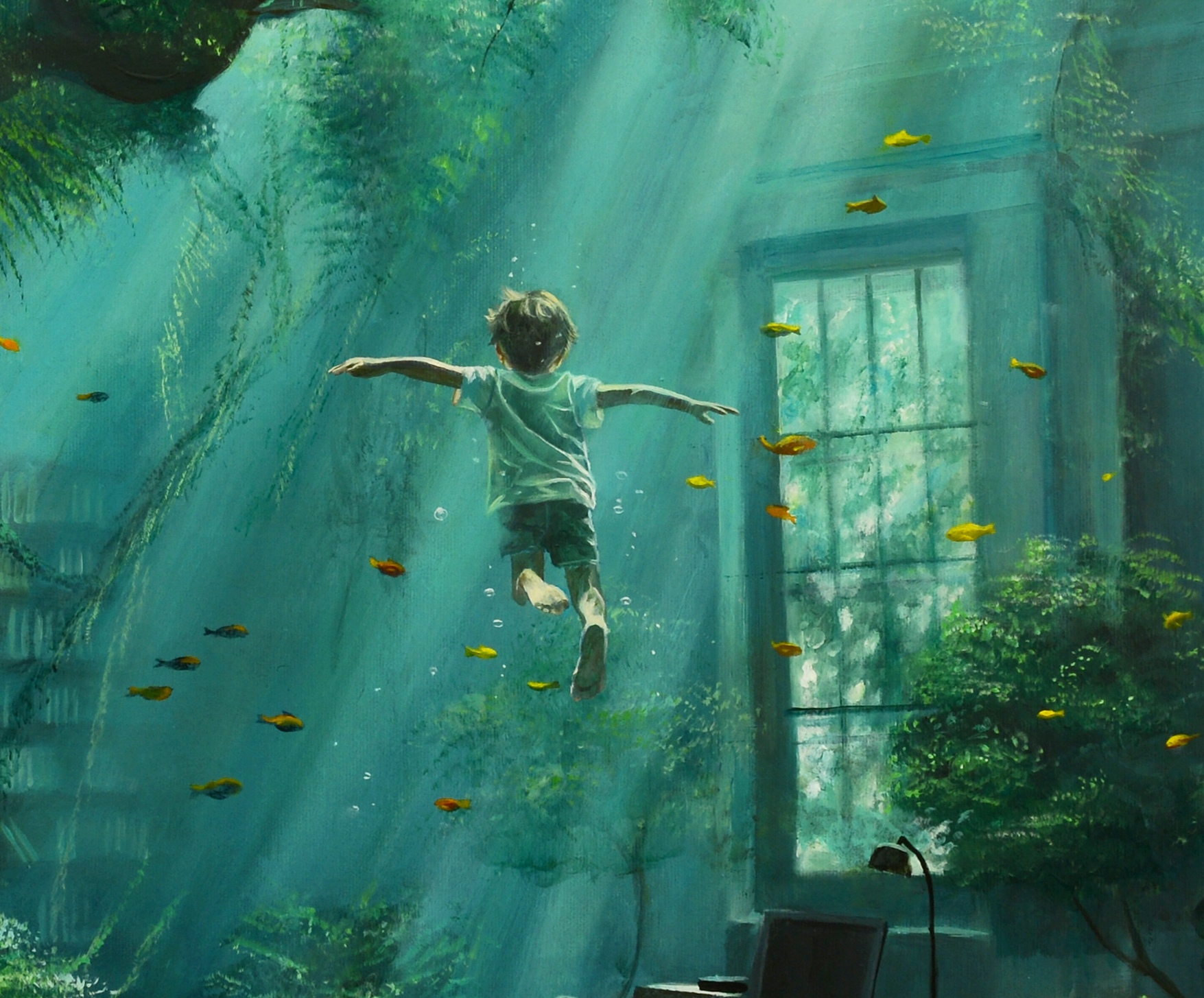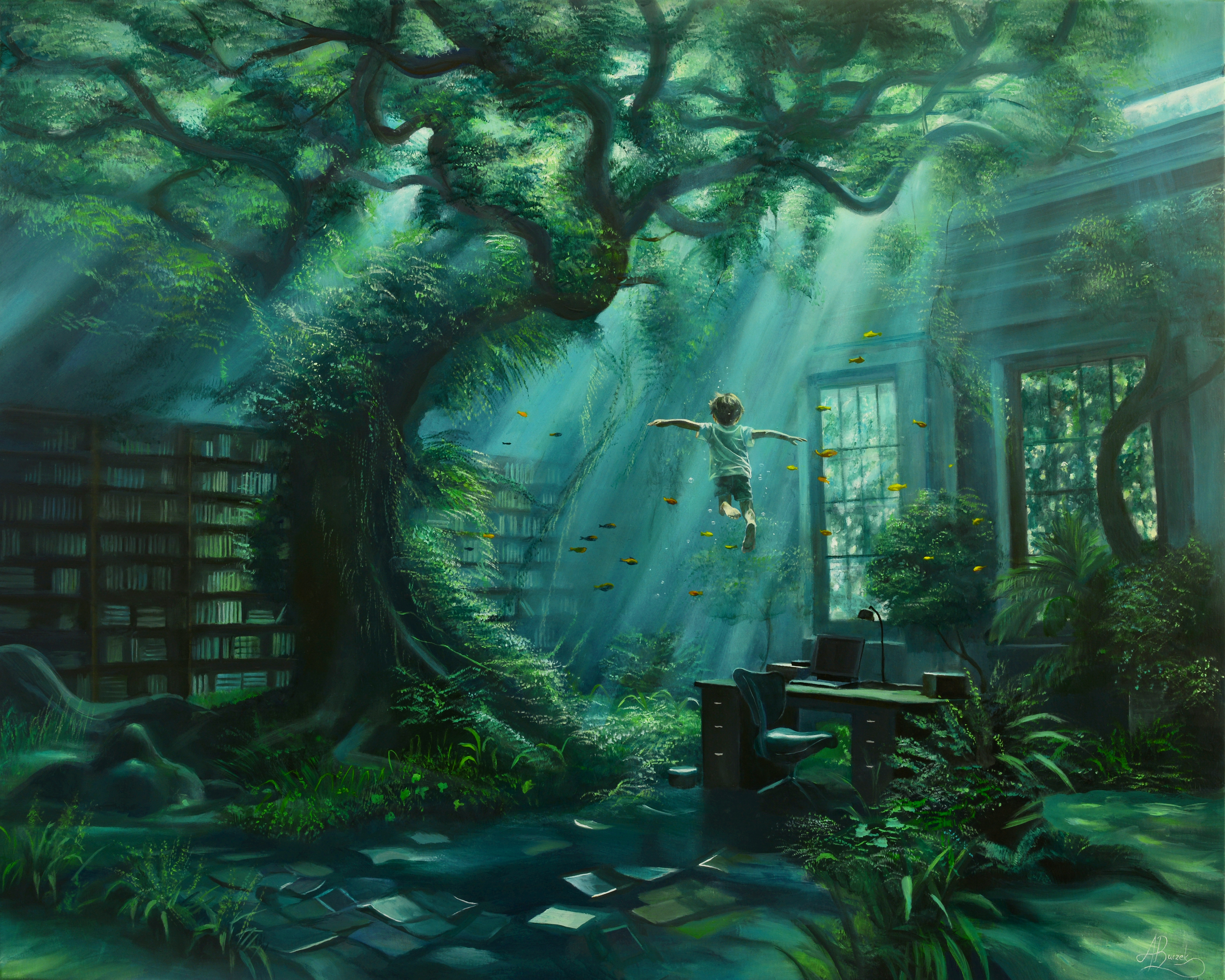 "Wyzwolenie" to surrealistyczny obraz wykonany w 2024 roku. Czasami potrzebujemy wyzwolić się z więzów tego, co nie pozwala nam oddychać pełną piersią, aby wypłynąć do powierzchni i zaczerpnąć oddech. Obraz powstał na płóciennym podobraziu naciągniętym na blejtramę z wykorzystaniem farb olejnych, posiada zamalowane boki i jest gotowy do zawieszenia na ścianie w ramie, lub bez niej. Użycie najwyższej jakości materiałów oraz późniejsze zawerniksowanie gotowego dzieła, daje mu niezwykłą trwałość na długie lata. Każdy obraz powstaje tylko raz, jest jedyny i niepowtarzalny. Oryginalne dzieła poza walorami estetycznymi i głębokim przekazem, posiadają wysoką wartość kolekcjonerską.