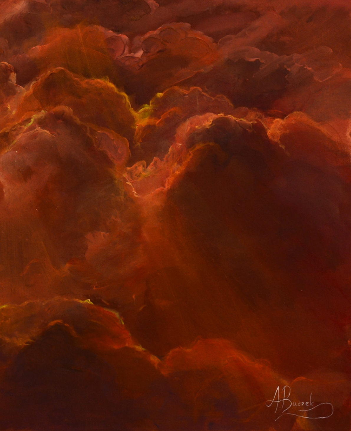 "Między myślami" to surrealistyczny obraz wykonany w 2024 roku. ...Pomiędzy myślami, poza rzeką słów, odnajdź w sobie spokój i akceptację... Namalowany na płóciennym podobraziu naciągniętym na blejtramę z wykorzystaniem farb olejnych. Obraz posiada zamalowane boki i jest gotowy do zawieszenia na ścianie w ramie, lub bez niej. Użycie najwyższej jakości materiałów oraz późniejsze zawerniksowanie gotowego dzieła, daje mu niezwykłą trwałość na długie lata. Każdy obraz powstaje tylko raz, jest jedyny i niepowtarzalny. Oryginalne dzieła poza walorami estetycznymi i głębokim przekazem, posiadają wysoką wartość kolekcjonerską.