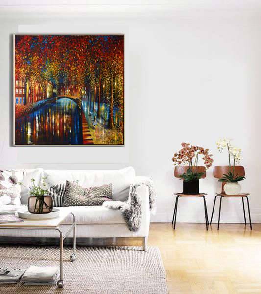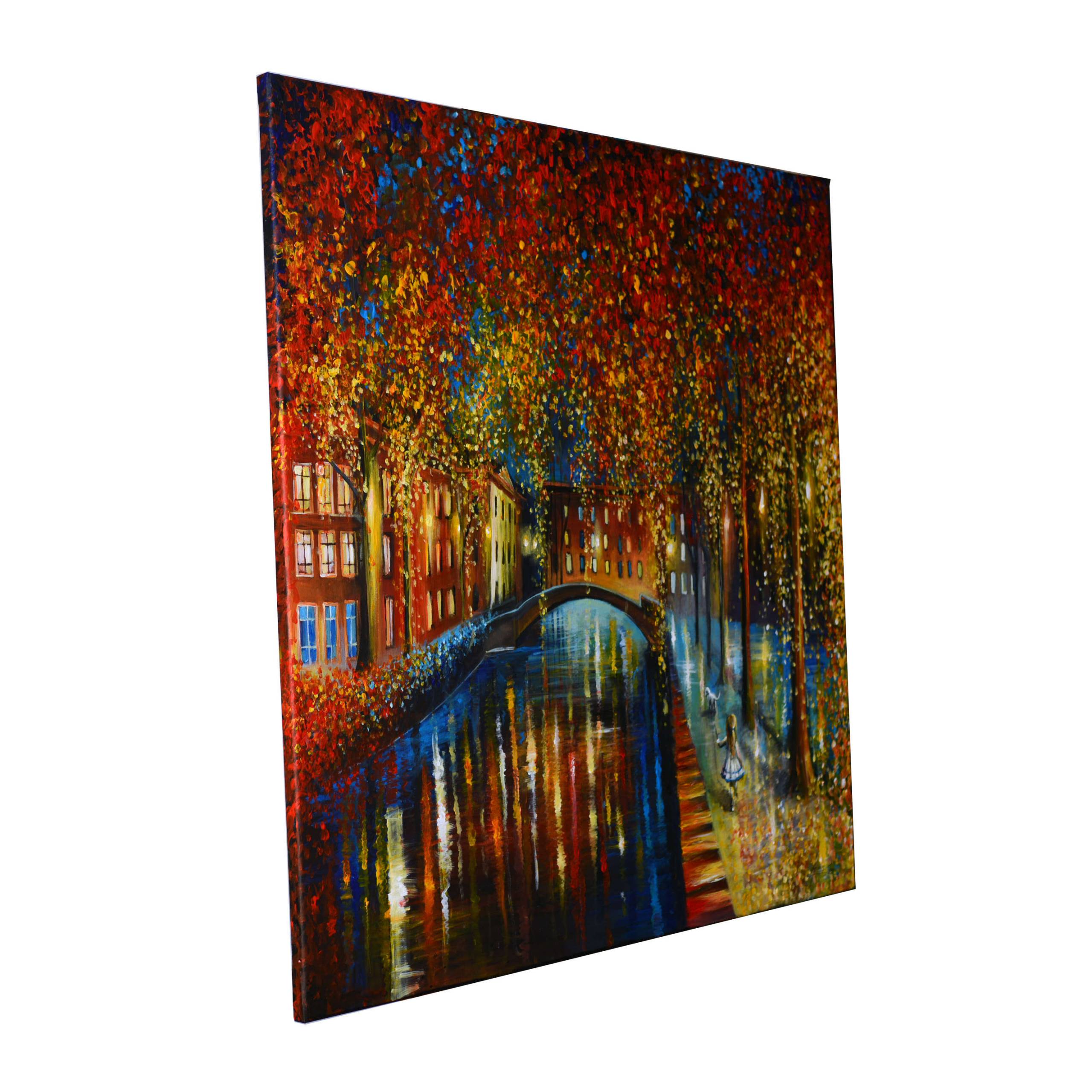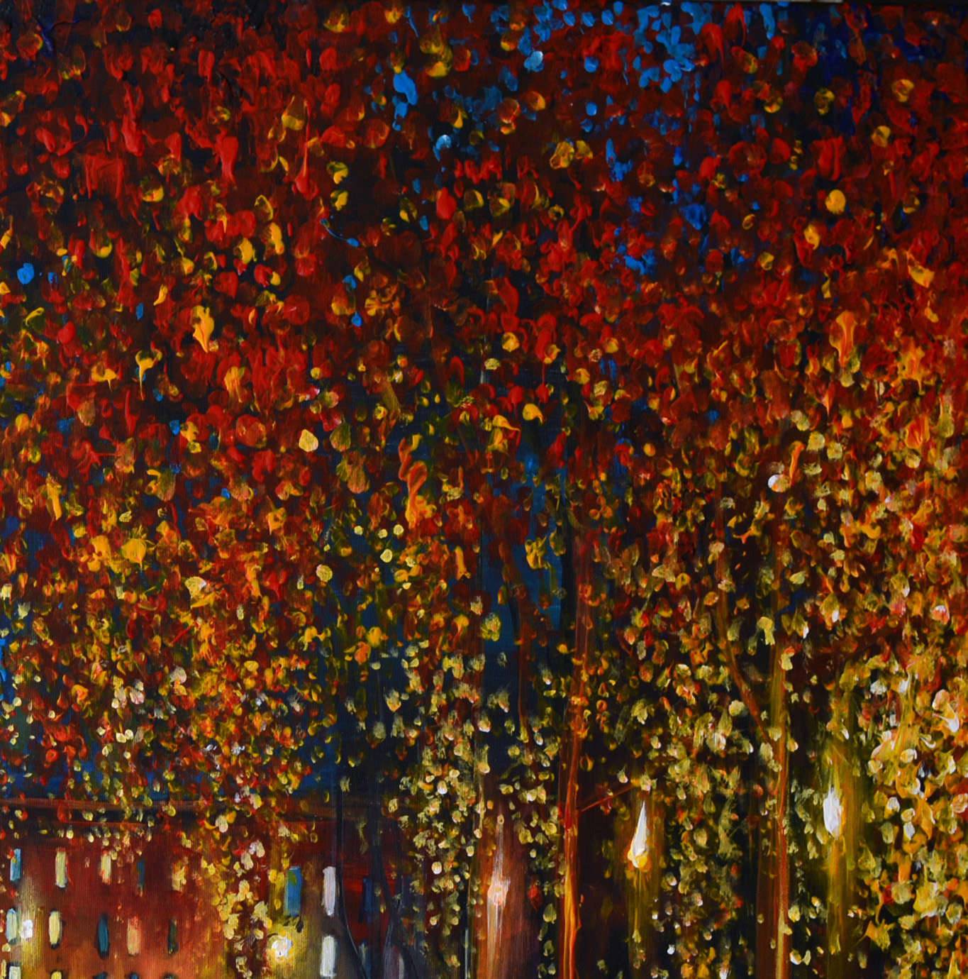 Nowoczesny impresjonistyczny obraz na grubym płóciennym podobraziu z cyklu obrazów pt. "Kolorowy deszcz". Cykl charakteryzuje się wielobarwnością, impresjonistycznym stylem, motywem światła a przede wszystkim bardzo grubo kładzioną fabą i jaskrawymi kolorami. Kolorowy deszcz to metafora odnosząca się do grudek farby- kolorowych kropli na obrazie. Obrazy mają sprawiać wrażenie 3d. Praca nie wymaga oprawy, gdyż boczne krawędzie są zamalowane i są kontynuacją obrazu- imopresjonistyczne plamy również po bokach obrazu.. Praca zawerniksowana błyszczącym werniksem (efekt lekkiego błyszczenia -satynowy), gotowa do zawieszenia na ścianie. Obraz sygnowany w prawym dolnym rogu monogramem artysty /Allegory 2018.