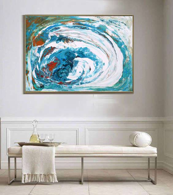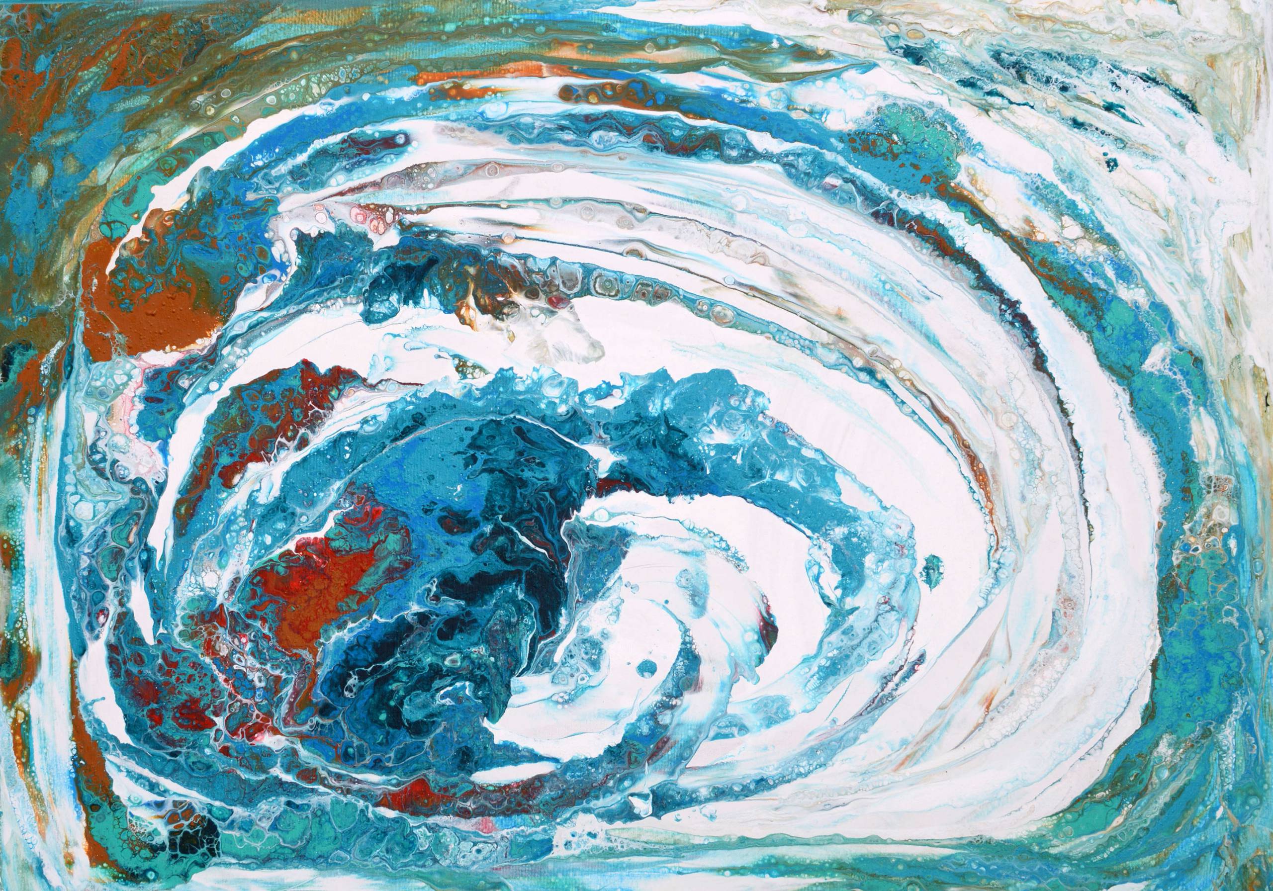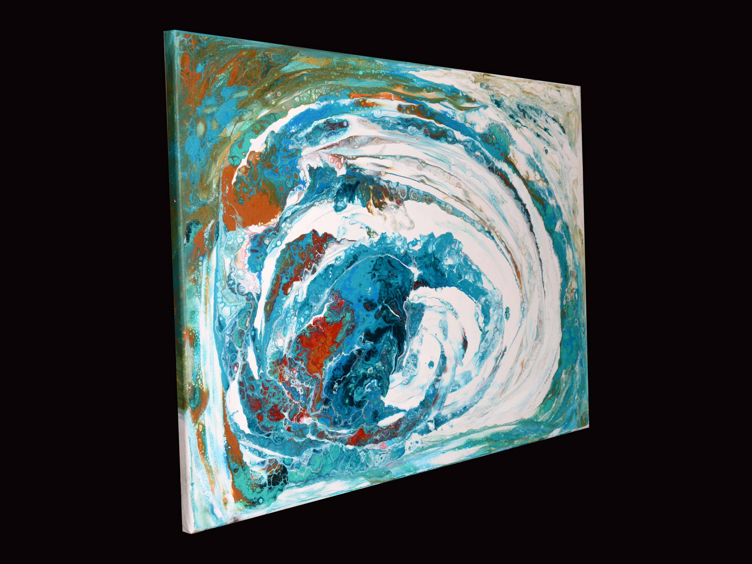 Abstrakcja organiczna na grubym płóciennym podobraziu z cyklu obrazów pt. Turkusowe morze. Nurt ten sprowadza się do kształtowania formy na wzór natury, jednak bez dosłownego naśladowania jej tworów. Obraz jest metaforą współczesnego świata, idealnie pasuje do minimalistycznych wnętrz. OPRAWA: Praca nie wymaga oprawy, gdyż boczne krawędzie są zamalowane i są kontynuacją obrazu- wrażenie 3D, (wedle upodobania można obraz oprawić tak jak zaproponowano na wizualizacji - najlepiej w pozłacaną minimalistyczną ramę). Praca zakonserwowana błyszczącym werniksem (efekt lekko błyszczący), gotowa do zawieszenia na ścianie można przecierać wilgotną ścierką. OBRAZ SYGNOWANY: Obraz sygnowany na odwrocie monogramem artysty /Allegory 2018. Obraz nie jest podpisany z przodu, aby nie sugerować sposobu zawieszenia i pozostawić wszystkie 4 sposoby układu obrazu według upodobania odbiorc
