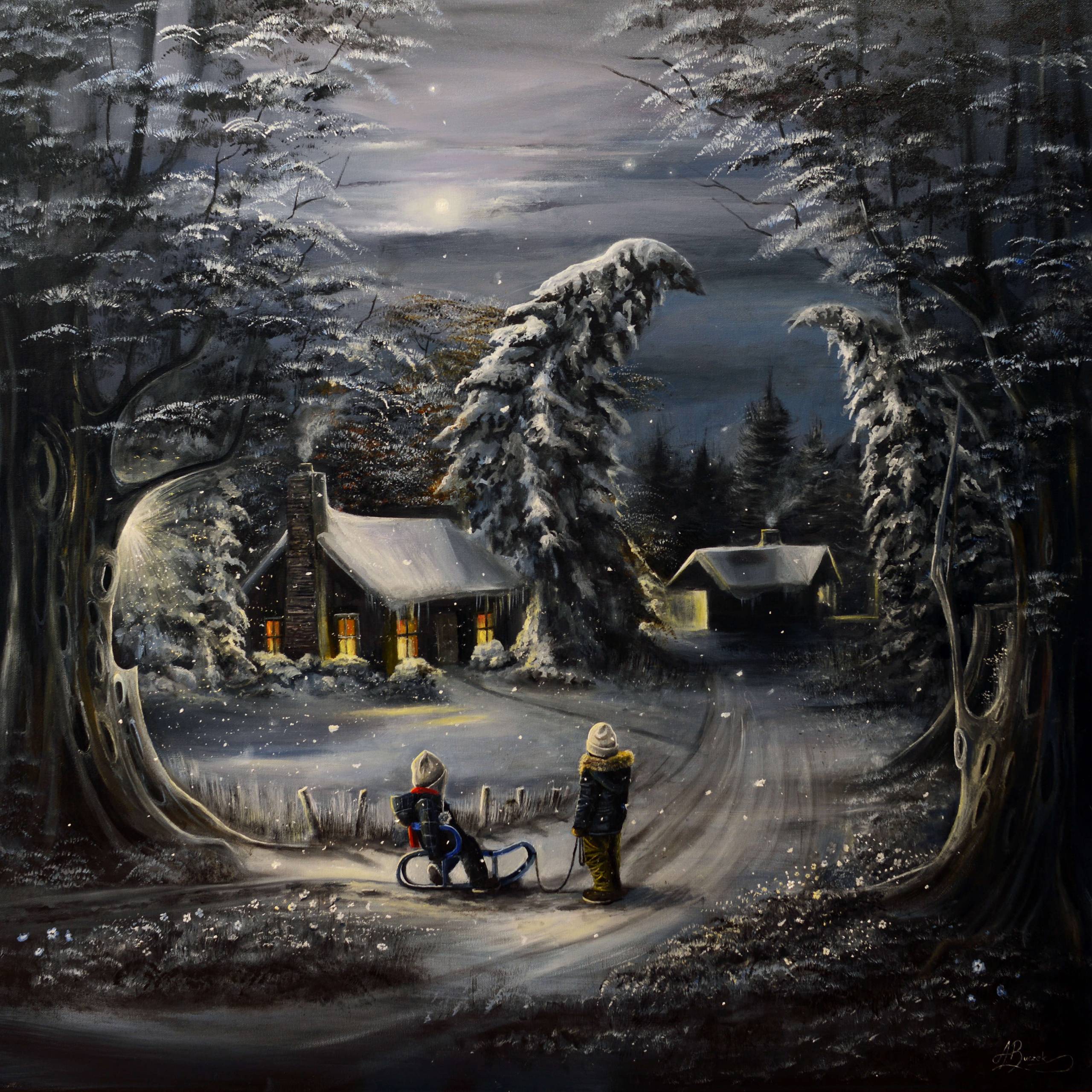 Magiczny obraz na grubym płóciennym podobraziu z cyklu obrazów pt. Cisza. Praca nie wymaga oprawy, gdyż boczne krawędzie są zamalowane i są kontynuacją obrazu- wrażenie 3D. Praca zawerniksowana satynowym werniksem, gotowa do zawieszenia na ścianie. Obraz sygnowany w prawym dolnym rogu monogramem artysty /A.Buczek. Obraz Chwila to pełna ciepła i radości opowieść o magicznych momentach podczas zimy, o zatrzymaniu się na chwilę i o zadumie.