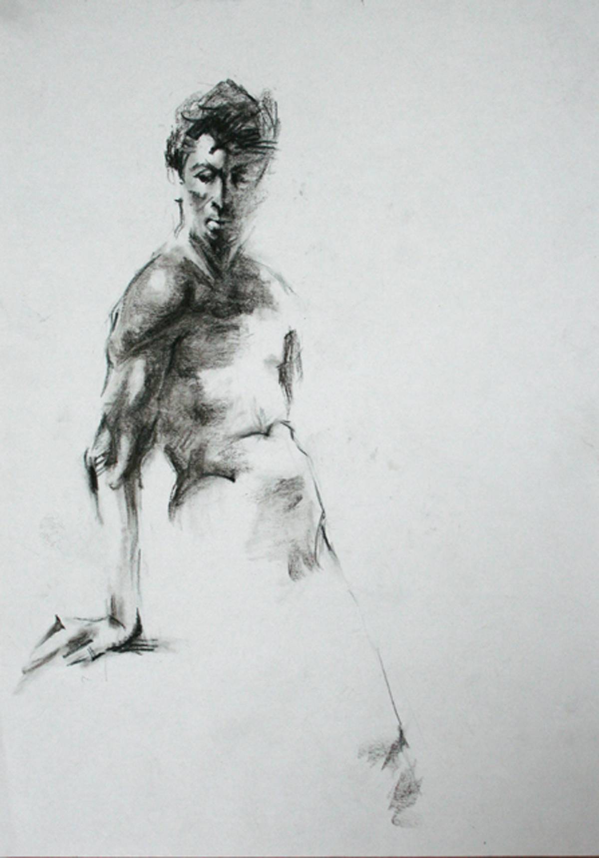 Obraz jest niezwykły w swojej prostocie i surowości. Dominują na nim odcienie szarości, co tworzy nostalgiczną i nieco melancholijną atmosferę. Czarna kreska, choć delikatna, precyzyjnie podkreśla dynamiczne kontury postaci. Ta niepełna forma, niedokończony charakter rysunku przyciąga wzrok i zachęca do zadumy. Kompozycja jest asymetryczna, wielu detali brak, co zostawia pole dla wyobraźni widza. Może to symbolizować ulotność chwili i delikatność ludzkiego życia. Artysta zastosował technikę szkicu, nadając całości wrażenie spontaniczności i dynamiczności. Przypomina mi to trochę, jak w momencie zabawy na piasku, gdy tworzysz coś, co zaraz zniknie. W tych prostych, swobodnych pociągnięciach widoczna jest pewna swoboda, a jednocześnie precyzja. Emocje, jakie towarzyszą oglądaniu tego dzieła, to mieszanka spokoju i introspekcji. Czujesz wewnętrzny dialog, pytanie nie o to, co widzisz, ale co to dla ciebie znaczy. Obraz może wywołać uczucie niedopowiedzianej historii. Moje pierwsze skojarzenie, dość "random", dotyczyło wiatru, który właśnie zatrzymał się na chwilę, by odpocząć. Czasem zastanawia się człowiek, co kryje się za tym obliczem. Może to po prostu chwila zadumy, a może zwykłe "hello" od artysty skierowane do nas.