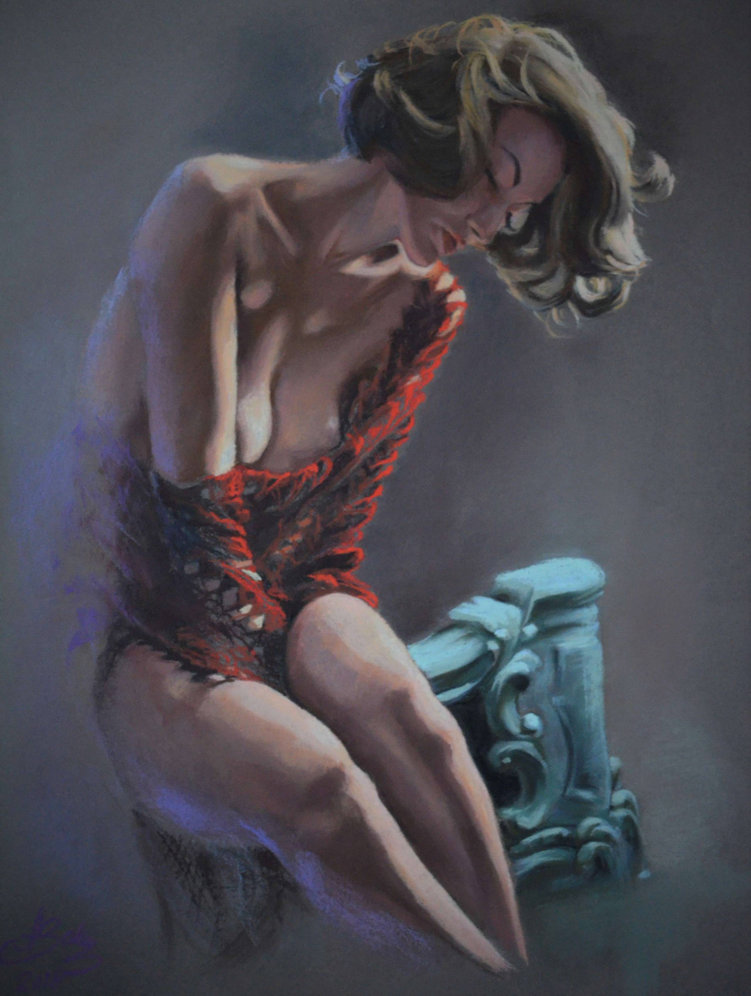 Temat kobiety należący do cyklu - Współczesne Boginie. Technika pastelowa, wielowarstwowa, impregnowana międzywarstwowo.