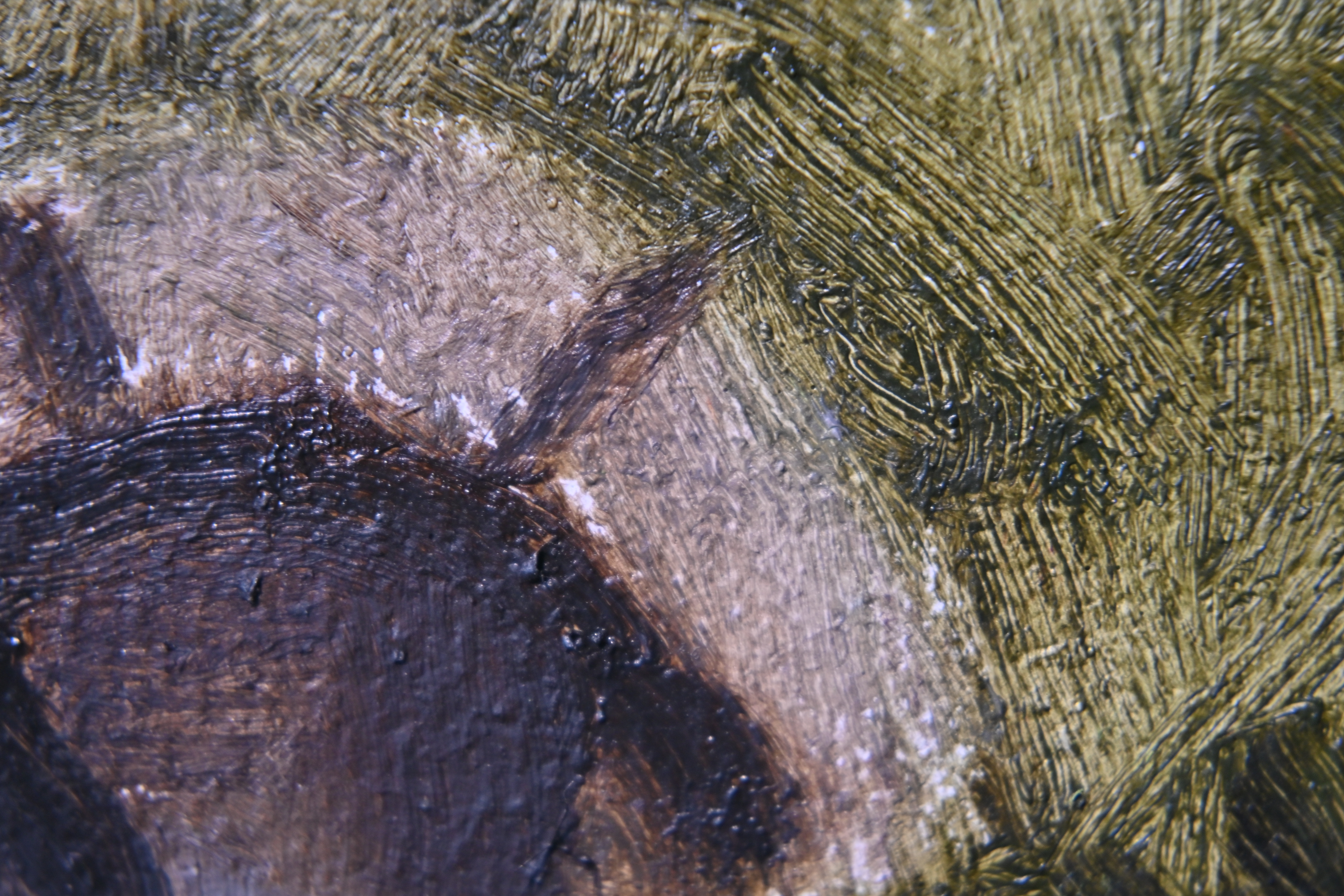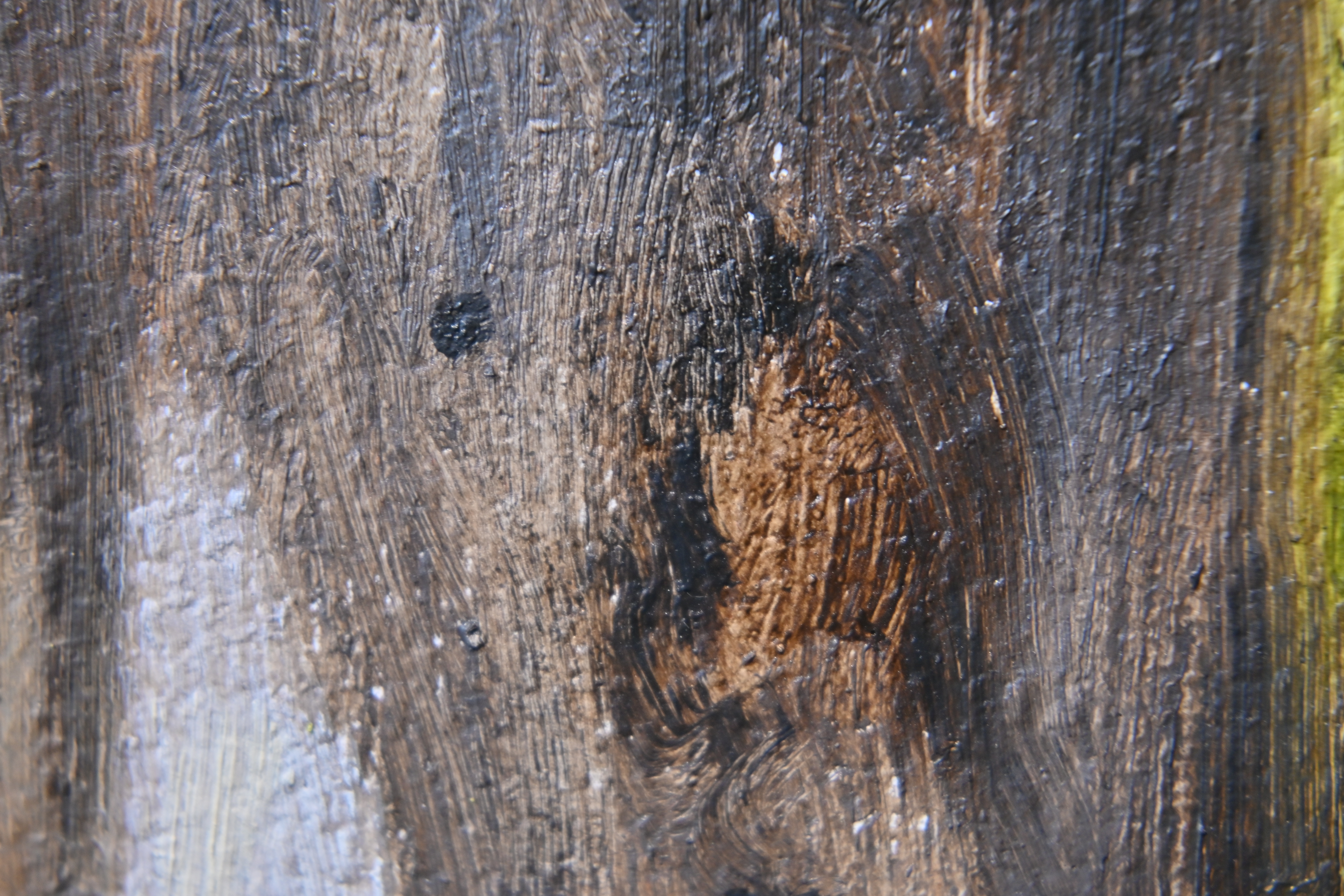 Obraz przedstawia abstrakcyjną wizję, która wciąga widza w swoisty taniec kolorów i tekstur. Wydaje się, że artysta zastosował impastową technikę, gdzie cienkie pociągnięcia pędzla nadają dziełu głębokość i unikatowe faktury. Dominują odcienie zieleni przechodzące płynnie w brązy i czernie, tworząc dynamiczny kontrast i wciągającą kompozycję. Całość emanuje spokojem i harmonią, choć nie brak tu tajemniczości. Obraz ma w sobie coś z impresjonistycznej magii, gdzie szczegóły zostają stopniowo odsłonięte przed cierpliwym okiem widza. Technika jest bardzo tactile, można niemal poczuć pociągnięcia pędzla pod palcami. "It's like a dream," ktoś mógłby powiedzieć, patrząc na te zawirowania i subtelne przejścia kolorów. Dzieło wywołuje całą gamę emocji – od spokoju po zadumę, a nawet delikatne przygnębienie. Co to przypomina? Może fragment pejzażu, może coś zupełnie innego – każdy może znaleźć tu własną interpretację. Patrząc na ten obraz, czuję jak gdybym przeniósł się do innego świata. Widzę tu górę! powiedziałoby dziecko, dostrzegając nieoczywiste formy wyłaniające się z mieszanki barw. Styles of nature, jak to mawiają, skłaniają do marzeń i refleksji. (AI)