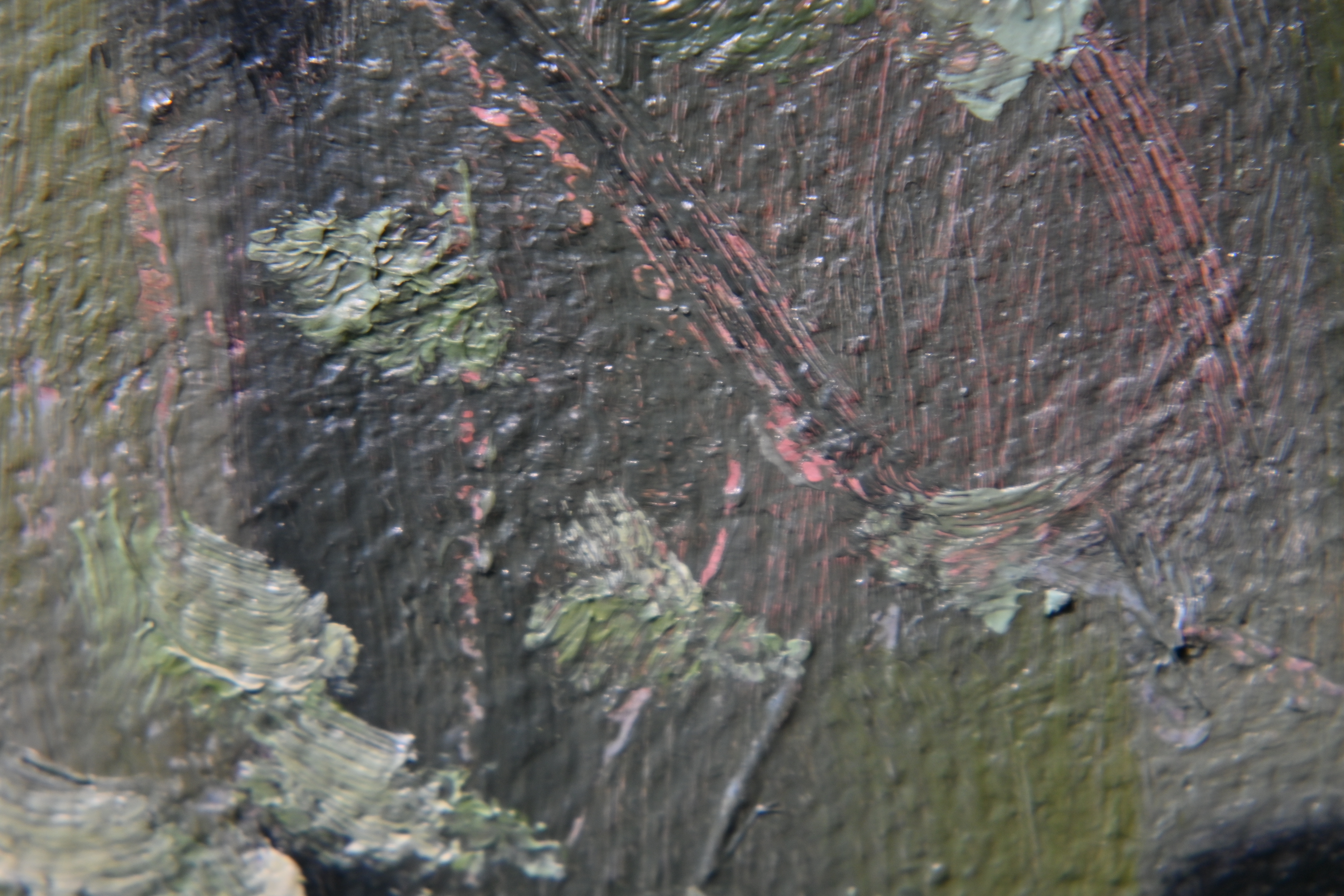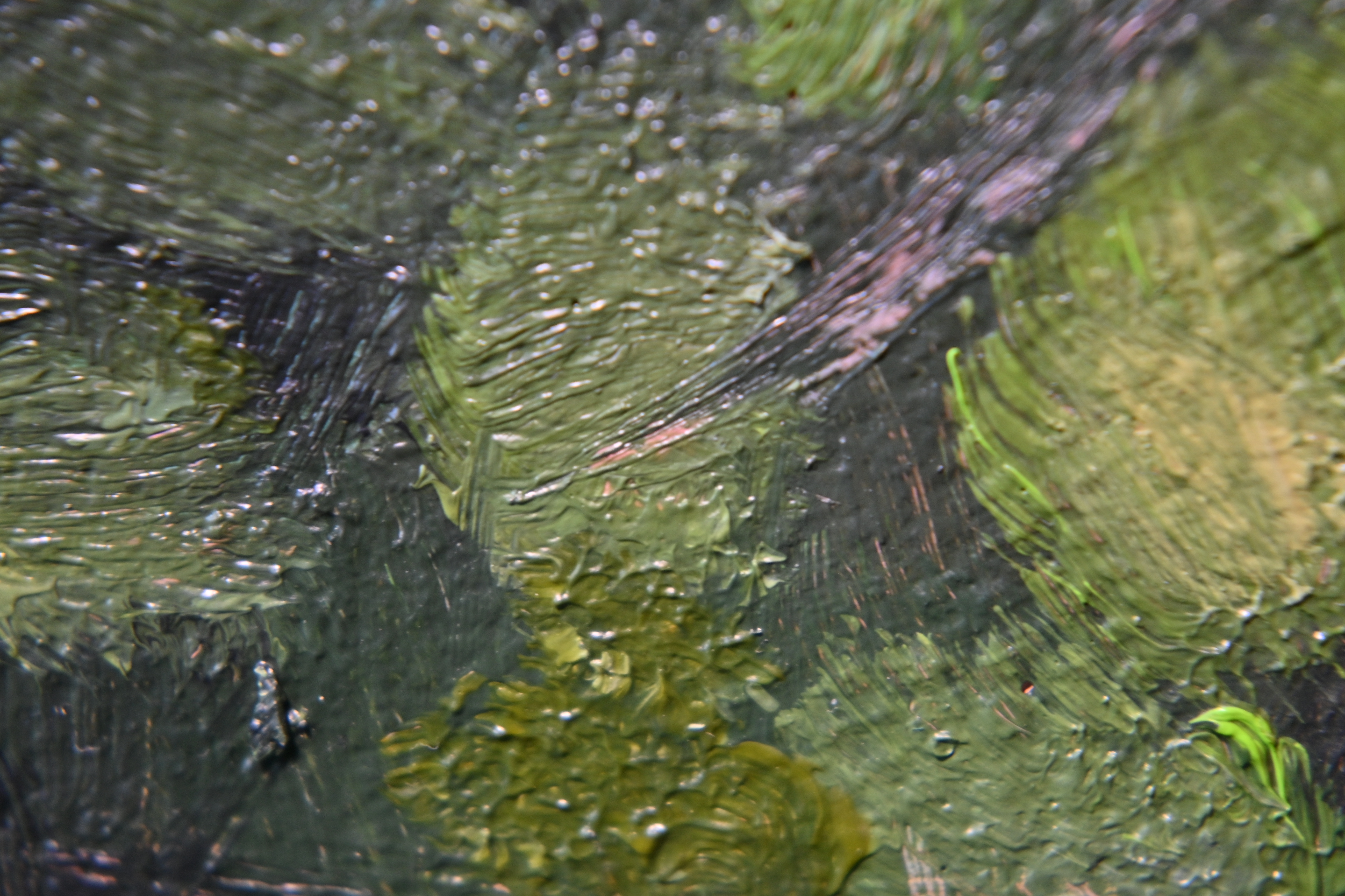 Obraz przedstawia spokojną leśną scenę, gdzie dominują zielone odcienie. W centrum widzimy omszałe pnie drzew, które spowija gęsta roślinność. Kolory są stonowane, z przewagą ciemnej zieleni i delikatnymi akcentami jasnozielonych liści. Kompozycja jest niezwykle naturalna, prawie jakby widz podglądał tajemniczy zakątek lasu. Atmosfera obrazu emanuje ciszą i tajemnicą, trochę jakby ktoś szeptał „come explore”. Styl artystyczny sugeruje zastosowanie techniki alla prima, co dodaje tekstury i głębi całej scenie. Obraz wywołuje uczucie spokoju, ale też pewną refleksję nad przemijaniem. Jest w nim coś nostalgicznego, jakby przypominał o miejscach, które kiedyś odwiedzaliśmy. Przechodząc od formalnego opisu, powiedziałbym, że artysta naprawdę oddał esencję natury. A wiesz co, drzewka wyglądają jak smutne ludziki. Może to tylko moja wyobraźnia, ale czuję pewną emocjonalną więź z tym obrazem. Dla mnie to takie miejsce, gdzie chciałbym się zgubić, wyciszyć. Patrząc na tę scenę, można poczuć, jak codzienny chaos ustępuje, a przyroda przyciąga do swego magicznego świata. (AI) Obraz Ule II jest namalowany na podobraziu lnianym, technika alla prima. Sygnowany z przodu, opisany i sygnowany z tyłu. Jest jednym z serii obrazów z ulami, o tematyce wiejskiej. Wystawiany, publikowany.