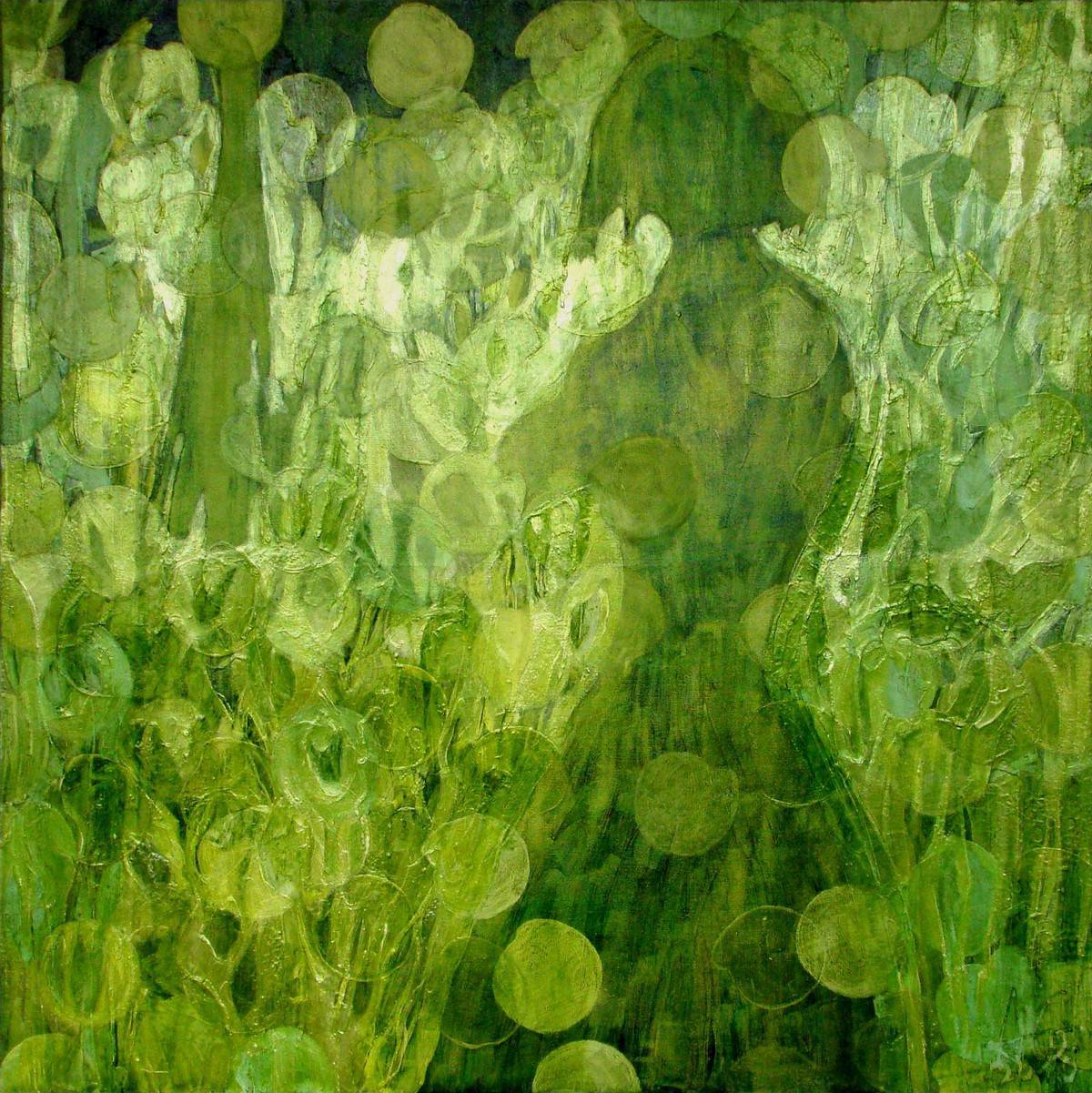 Obraz z cyklu "Tulpizm" - własna, daleko nawiązująca do unizmu, odmiana kierunku. Zintegrowana z naturą, wrażliwa przyrodniczka, wielbicielka uprawy tulipanów...