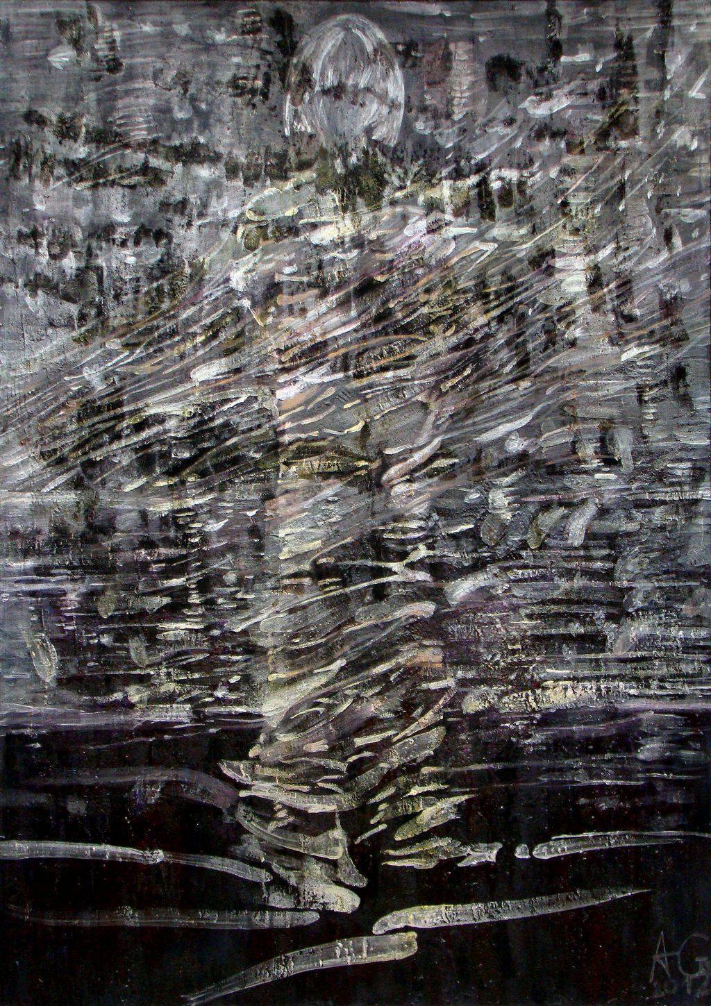Bardzo duży, strukturalny, "loftowy" obraz. Tajemniczy portret uwikłanej kobiety...