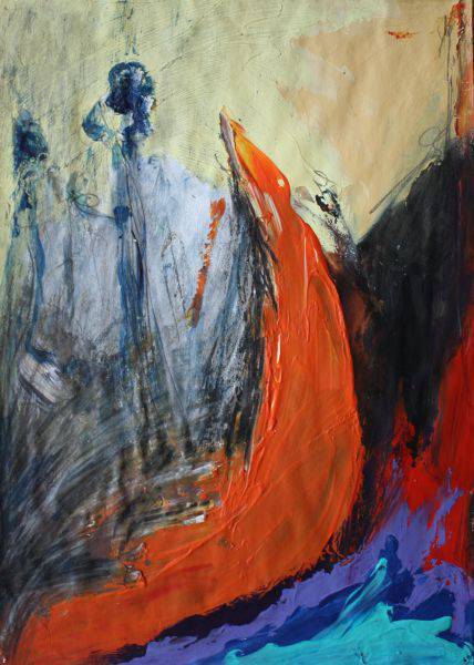 Ten obraz to festiwal kolorów i emocji, które wybuchają z płótna niczym fajerwerki. Dominuje intensywna pomarańcz, która przypomina płonący ogień, otoczony niebieskimi i fioletowymi falami. Te barwy tworzą dynamiczne kontrasty i nadają całości ruchu. Jest coś magicznego w sposobie, w jaki kolory splatają się ze sobą, niemalże tańcząc na powierzchni obrazu. Atmosfera? To eksplozja wewnętrznej energii, która może przywołać odczucia zarówno ekscytacji, jak i niepokoju. Abstrakcyjność formy pozostawia wiele pola do interpretacji. Czy to sztorm na morzu czy wewnętrzny konflikt? Każdy widzi coś innego, co spodoba się innemu widzowi. Artysta operuje tu z pewną nonszalancją. Pociągnięcia pędzlem są śmiałe, ekspresyjne, przywodzące na myśl techniki action painting. Ta odwaga w wyrażaniu siebie zaraża i dodaje odwagi oglądającemu. Dla dziecka obraz mógłby być marzeniem o przygodzie na pirackim statku podczas burzy. Jest tu freedom, który inspiruje do odkrywania. Osobiście, czuję że ten obraz wciąga mnie w swój wir kolorów, przypominając że sztuka to podróż. sztuka to podróż pełna zaskoczeń i emocji, gdzie każdy krok odkrywa coś nowego.