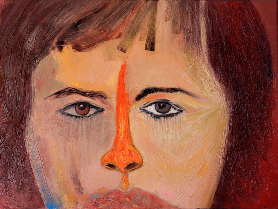 Obraz przedstawia portret, który hipnotyzuje swoją prostotą i jednocześnie złożonością kolorów. Dominują ciepłe odcienie czerwieni i brązu, przeplatające się z delikatnymi tonami pomarańczy i różu. Twarz, stanowiąca centralny punkt kompozycji, emanuje tajemniczością. Artysta użył grubo nałożonych pociągnięć pędzla, co nadaje dziełu tekstury i głębi. Styl przypomina nieco impressionism, gdzie nacisk kładzie się na emocje, a nie na realistyczne odwzorowanie. Nastrój obrazu to połączenie spokoju i niepokoju. Dwa oczy wpatrują się w widza z intensywnością, która prawie krzyczy. Obraz ma w sobie coś z dream-like quality, jakby uchwycił ulotną chwilę między jawą a snem. Dziecko mogłoby powiedzieć: "Fajne oczy, jak u lalek". Patrząc na to dzieło, można poczuć mieszankę fascynacji i zadumy nad ukrytą historią portretowanej osoby. Czy to radość, czy smutek? Każdy widz może dostrzec coś innego, co czyni ten obraz wyjątkowym. Malarz, swoją odważną paletą, skłania do refleksji nad złożonością ludzkiej natury. To sztuka, która zapada w pamięć i pozostawia ślad.