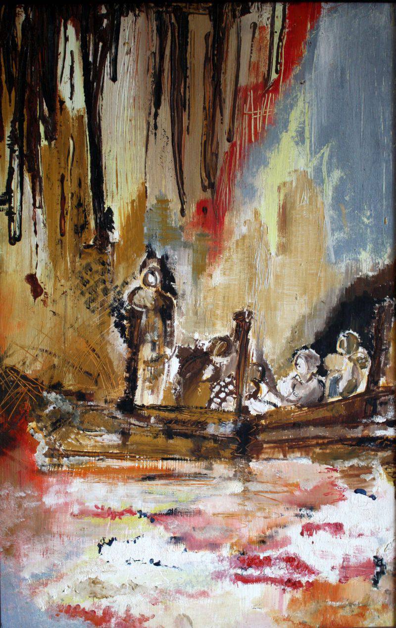 Ten obraz to prawdziwa eksplozja kolorów i emocji. Dominują tu brązy, beże i czerń, które złagodzone są delikatnym błękitem i czerwonymi akcentami. W centrum kompozycji widzimy grupę postaci w łodzi, które tylko delikatnie zarysowane wydają się, jakby miały opowiedzieć własną historię. Tło jest niesprecyzowane, co nadaje całości tajemniczy nastrój - czy to jaskinia? Może rzeka? Atmosfera jest pełna niepokoju, ale i fascynacji. Styl jest ekspresyjny. Techniką, którą artysta wybrał, jest impast i dynamiczne, szybkie pociągnięcia pędzla. Wygląda, jakby malarz zabierał nas w chaotyczną podróż myśli. Dzieło wywołuje w odbiorcy wiele emocji. Może to być nostalgia za nieznanym, a może chęć odkrywania nowego świata. Czuję, że obraz ten opowiada o podróży, zarówno fizycznej, jak i duchowej. I tak naprawdę, czy łódź płynie po wodzie, czy może unosi się w nicości, nie ma znaczenia. To jak pustynia, ale na wodzie. Freedom - słowo, które idealnie oddaje jego istotę. Patrząc na to dzieło, mam wrażenie, że jest jak sen, w którym nic nie jest oczywiste. Wow, jakie to piękne!