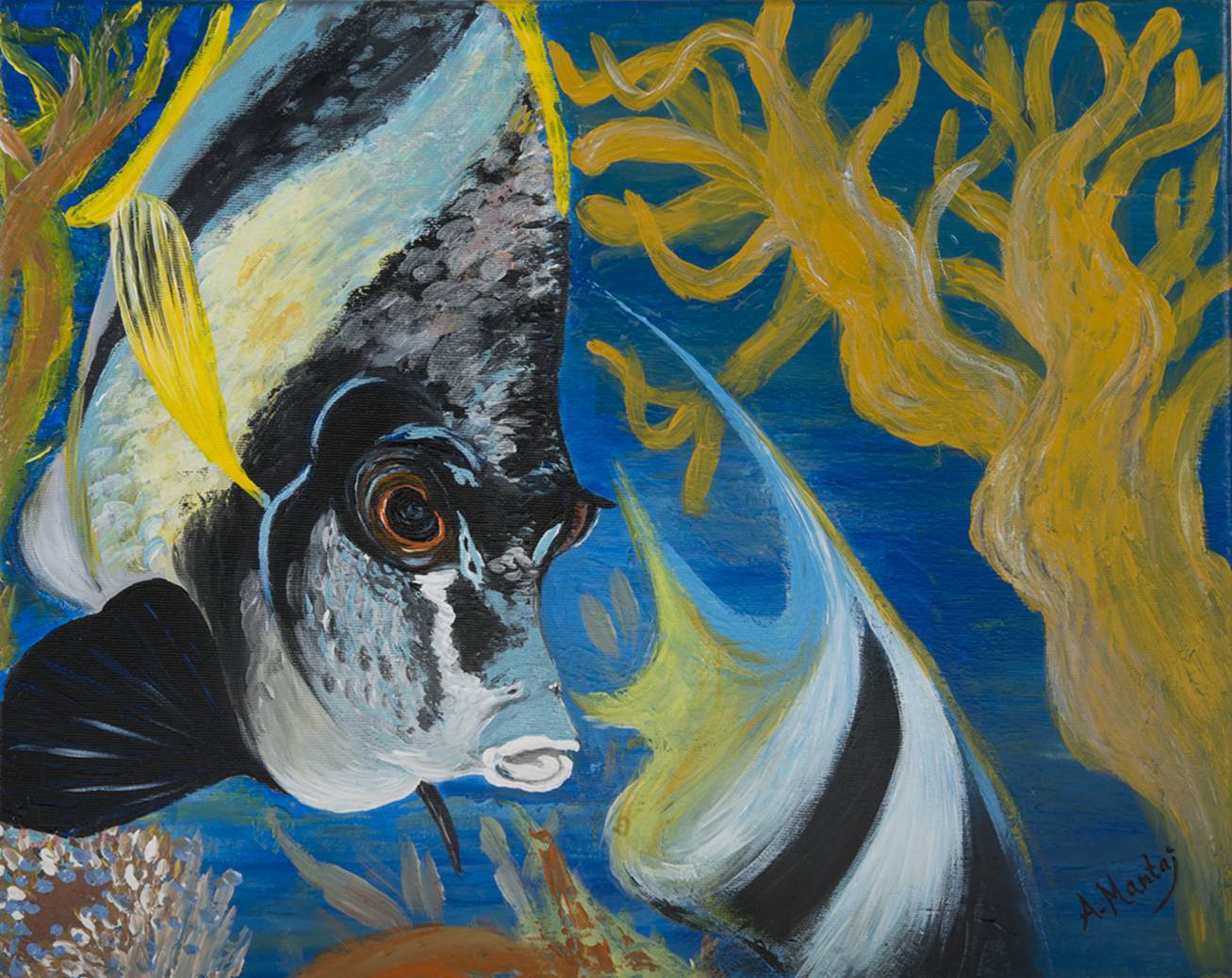 Obraz zainspirowany fotografią Wojtka Nawrockiego, namalowany w ramach wspólnego projektu fotograficzno-malarskiego "Z obiektywu na płótno". Wspaniale prezentuje sie w tryptyku z błazenkiem i skrzydlicą.