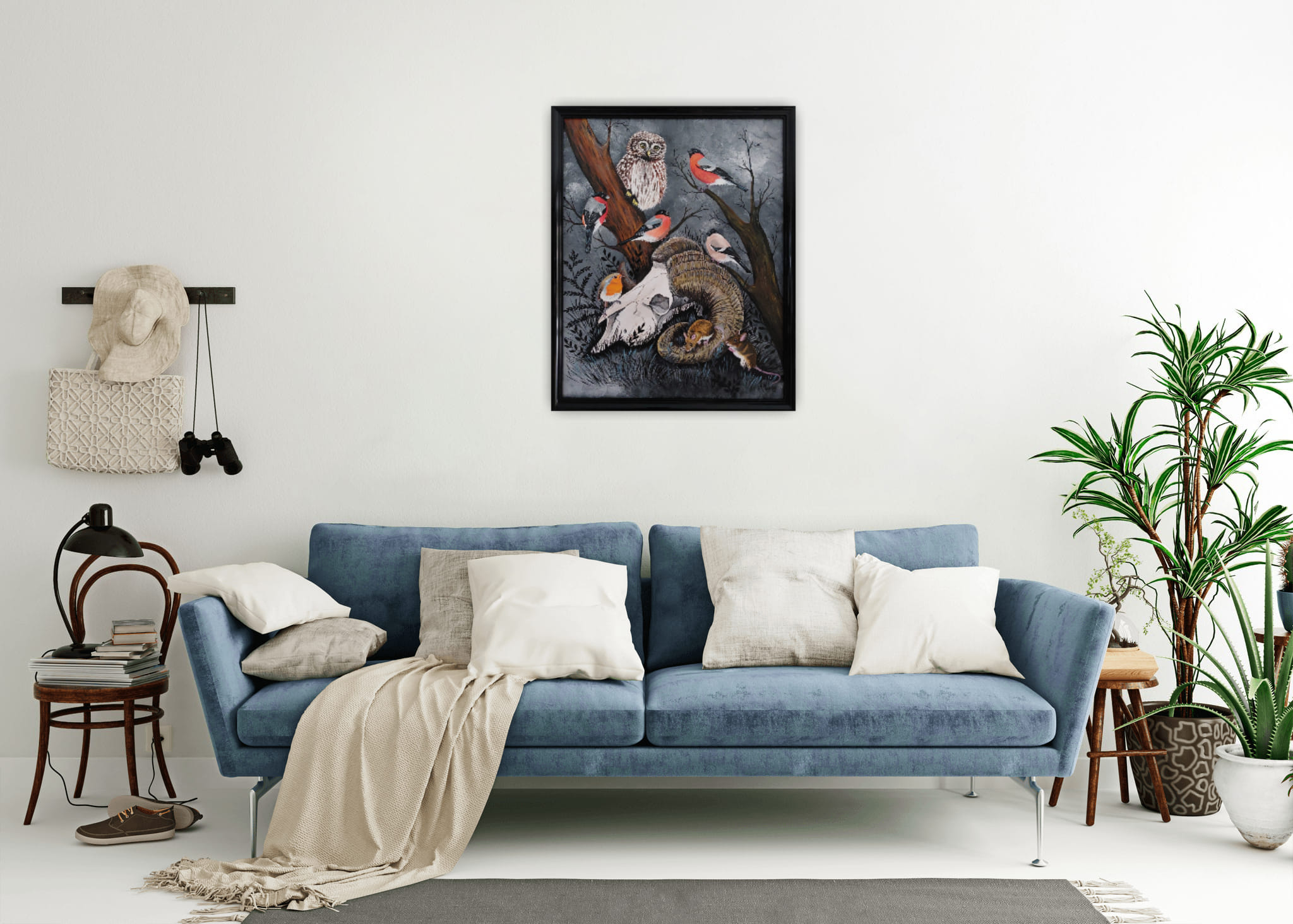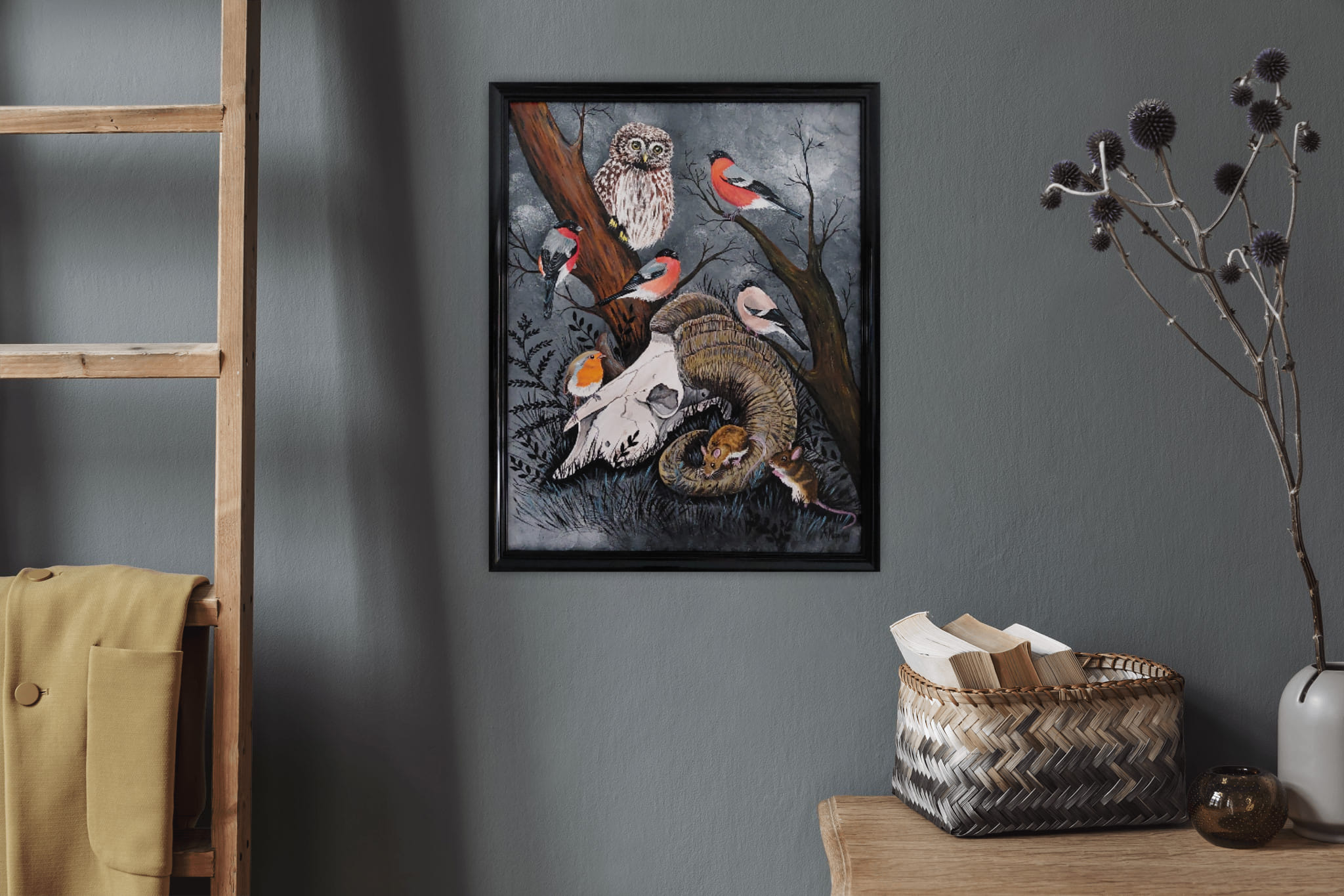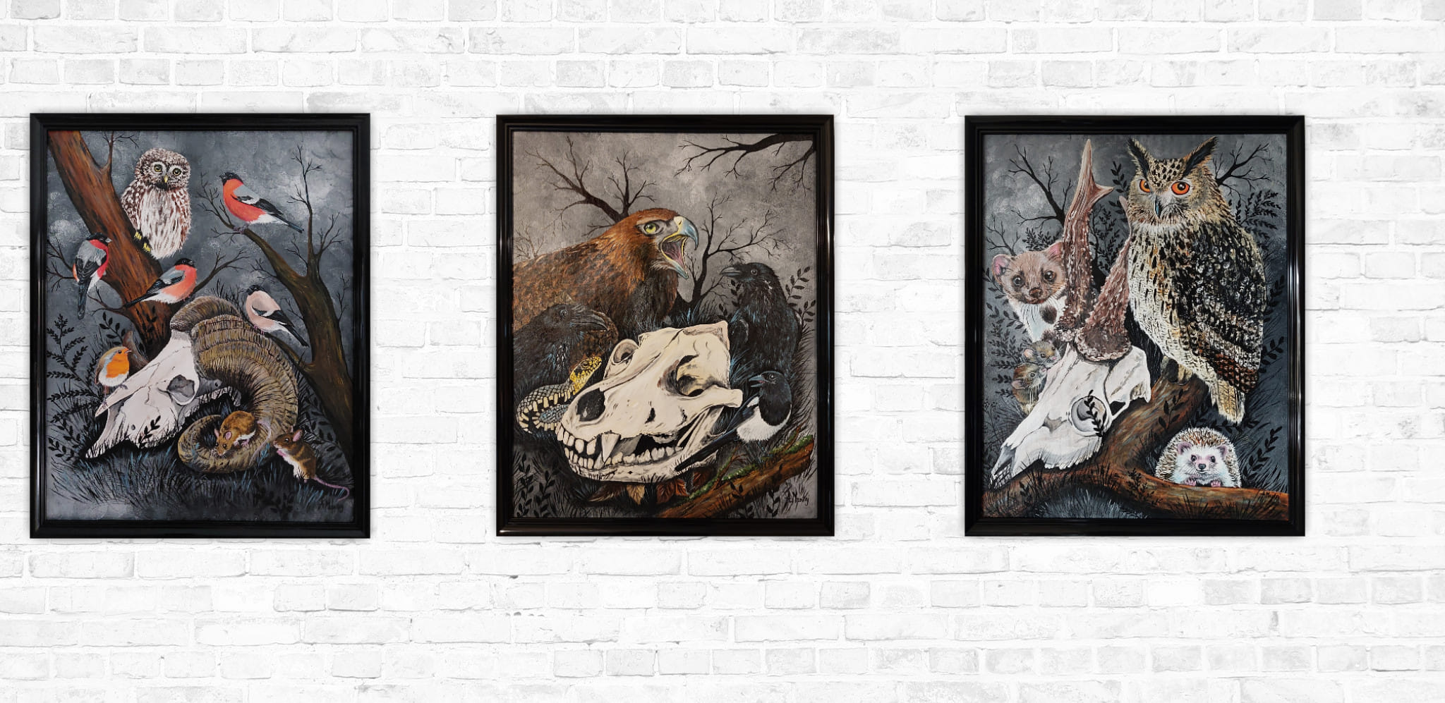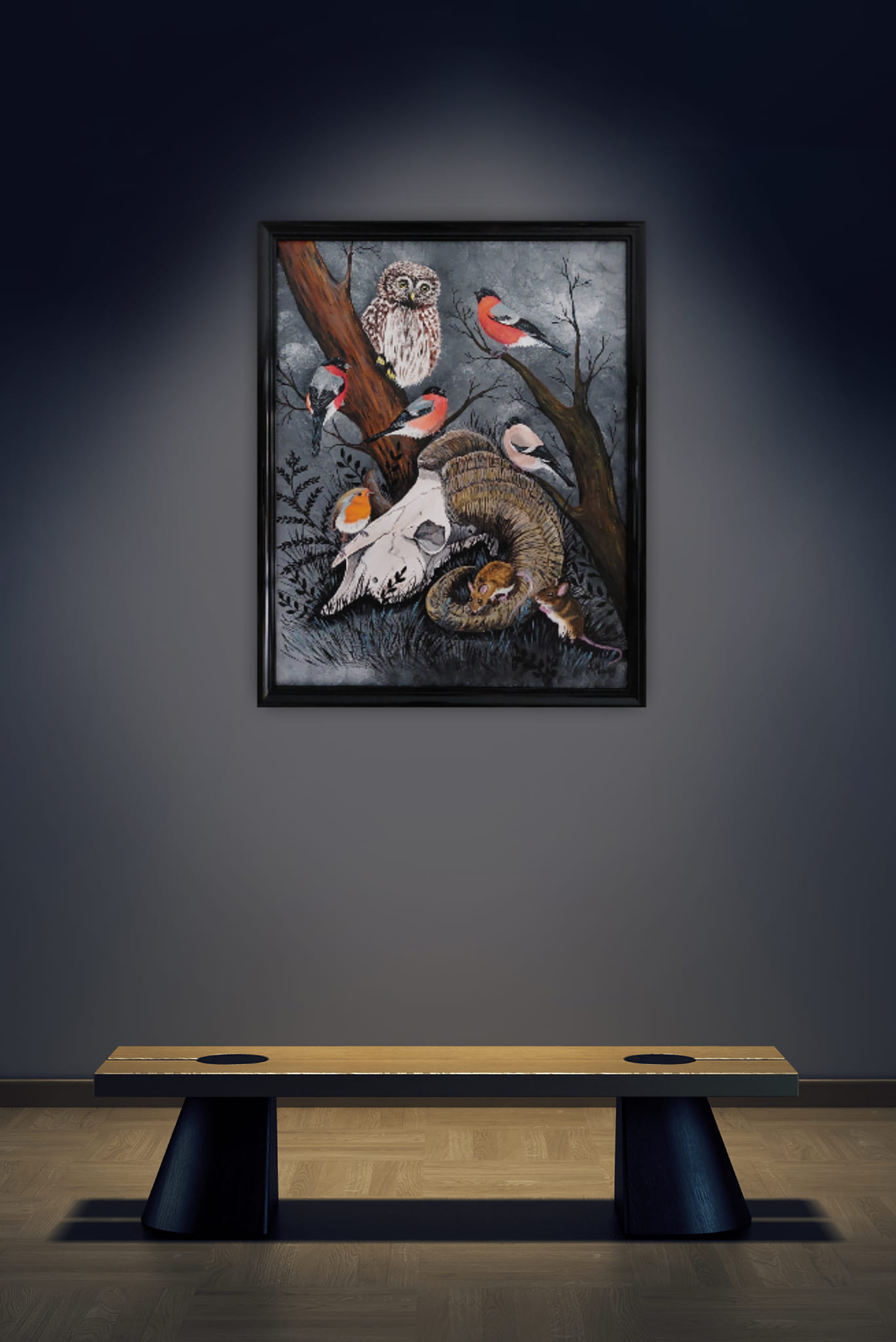 Agnieszka Mantaj - Czaszka muflona i ptaki