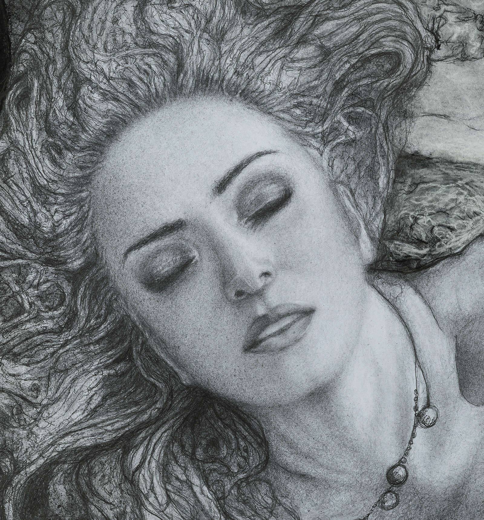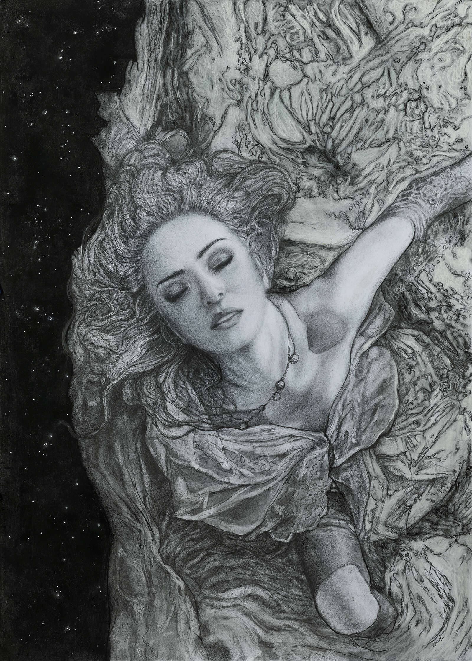 Unoszenie Rysunek - węgiel, grafit, biały pastel, tusz Format 70 x 50 cm Zabezpieczony fiksatywą, sygnowany.