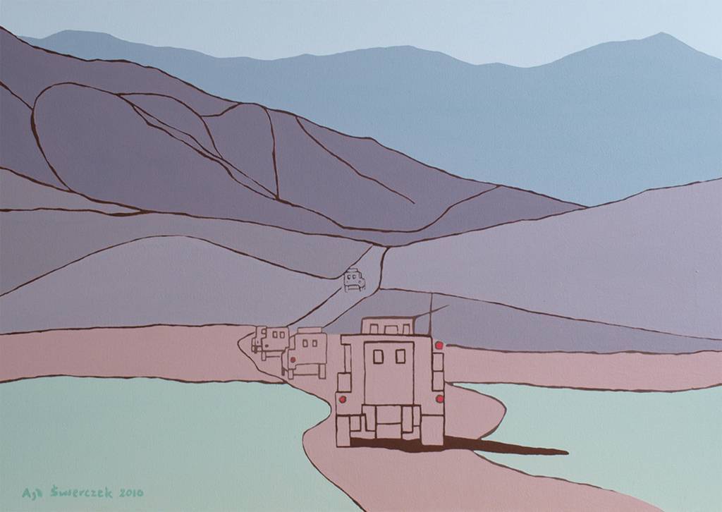 Wysyłka pracy może być zrealizowana po 01.08.2015r. Obrazy z cyklu Afganistan powstały pod wpływem pamiętnika i zdjęć, które przywiózł mój mąż z tego kraju. Trzy obrazy z tego cyklu w 2012r w Poznaniu, zostały zaprezentowane na wystawie pokonkursowej - przegląd młodej sztuki "Untouchable" w ramach Mediations Biennale, gdzie zajęły III miejsce;