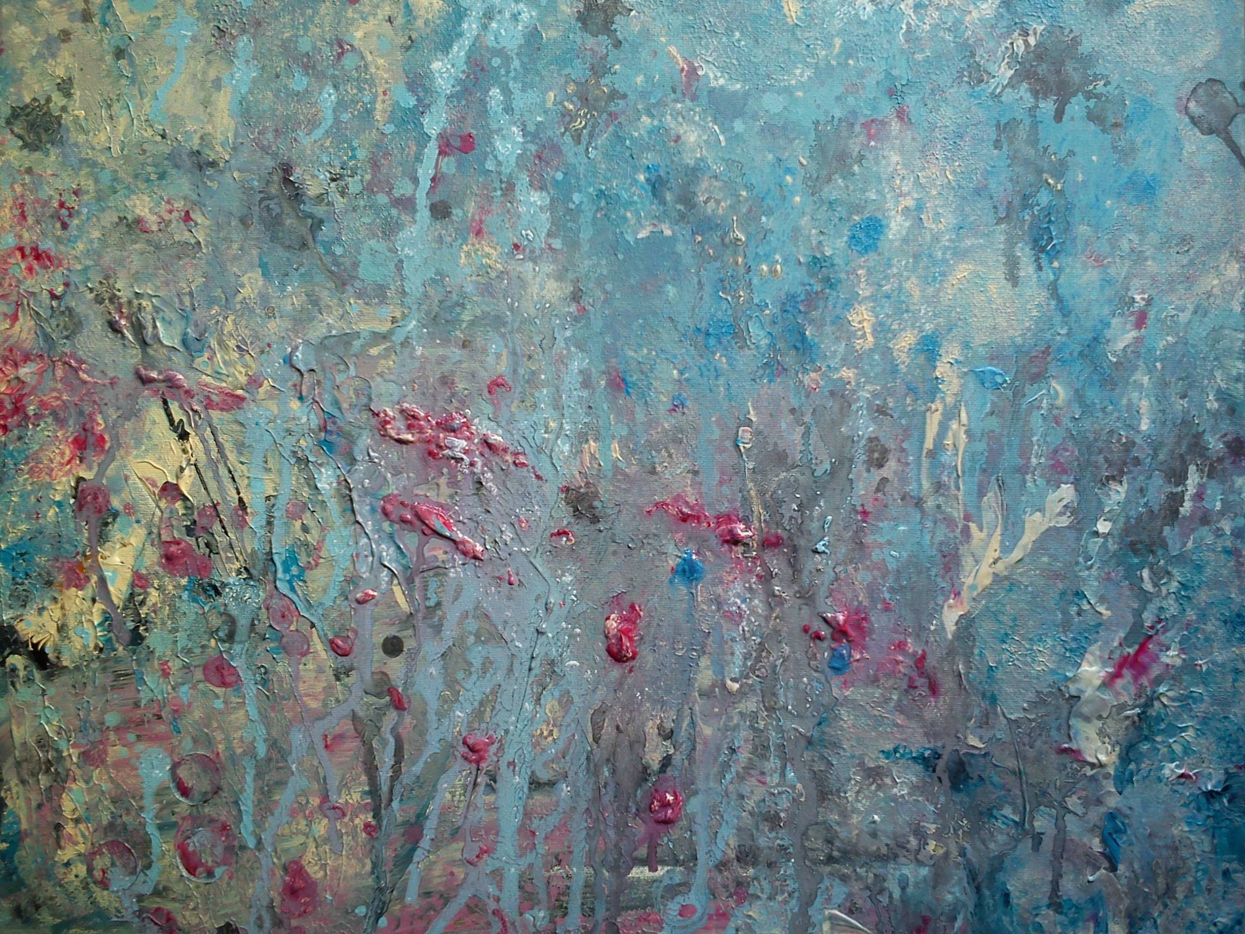 Obraz emanuje chaotycznym pięknem, jakie potrafi stworzyć tylko abstrakcja. Widzimy na nim eksplozję niebieskich tonów, przechodzących od delikatnego błękitu po intensywne turkusowe plamy. W tej chłodnej tonacji pojawiają się ciepłe akcenty – różowe i czerwone plamy, które niczym taniec przebijają się przez tło. Kompozycja sprawia wrażenie spontanicznej, jakby artysta pozwolił, żeby "farby same mówiły". W tym dziele czuć dynamikę i energię. Jest jak zawirowania wody w jeziorze podczas burzy. Chociaż technika wydaje się być chaotyczna, kryje w sobie coś niespodziewanie harmonijnego. Brushstrokes są wyraźne, niemal namacalne. Możemy prawie poczuć fakturę farby na płótnie. Zastosowanie impasto powoduje, że obraz zyskuje na głębi, a każda warstwa opowiada własną historię. Atmosfera obrazu jest zarazem energiczna i uspokajająca. Mnie osobiście przypomina to o beztroskim dniu nad morzem, gdzie wiatr figlarnie targa ci włosy. Look closer, a zobaczysz tu nie tylko kolory, ale emocje i uczucia. 7-letnie dziecko mogłoby powiedzieć, że to jest obraz, gdzie kolory się bawią w chowanego. Skłania do refleksji, pozostawiając odbiorcę z pytaniem: co naprawdę widzę za tą gamą kolorów?