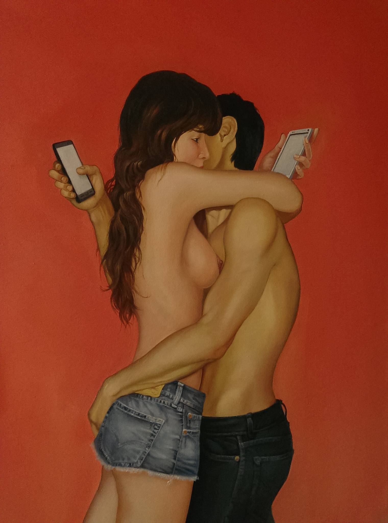 Virtual love. Girl. Guy. Smartphones. Sex.