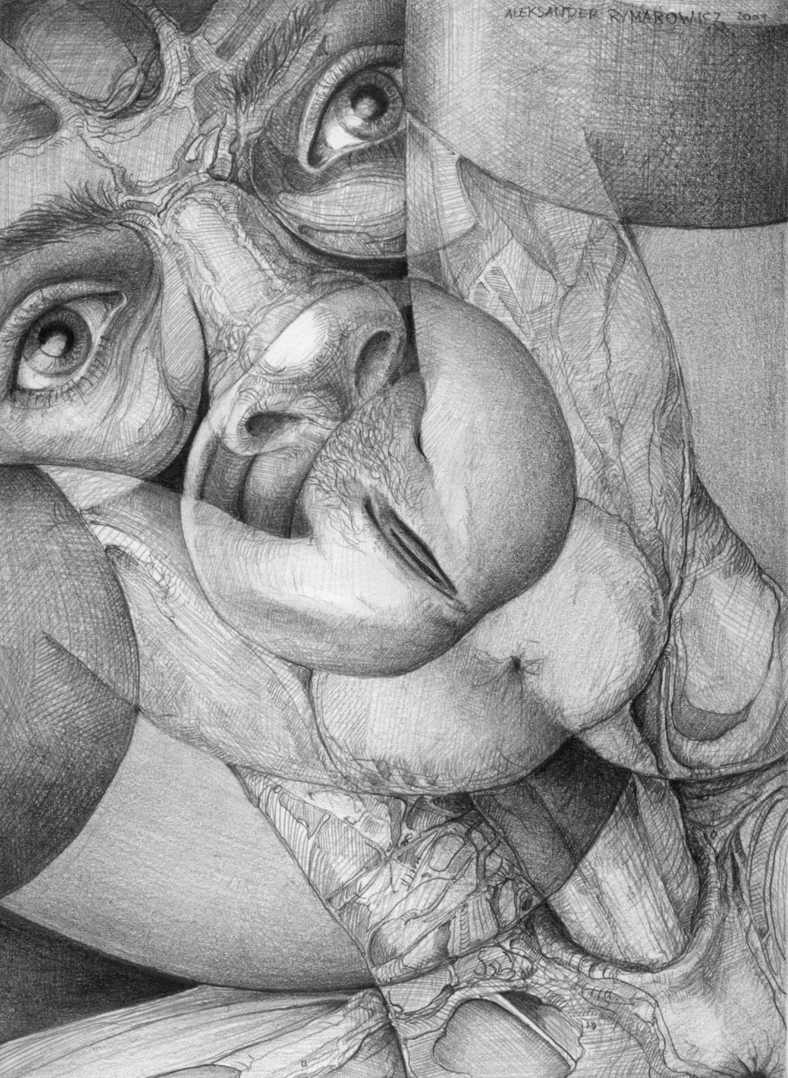 Obraz jest jak z pogranicza snu i jawy, pełen zawiłych kształtów i ukrytych twarzy. Czernie i szarości tworzą tło, które otacza złożoną mozaikę form. Każda linia jest narysowana z precyzją, jakby artysta wkładał w to serce i duszę. Kompozycja zdaje się być chaotyczna, ale przy bliższym spojrzeniu wszystko ma swoje miejsce. Dzieło emanuje atmosferą niepokoju i tajemnicy, jakby coś miało zaraz się wydarzyć. Styl przypomina surrealizm, z wyraźnym wpływem kubizmu. Poszarpane krawędzie i załamania światła przyciągają wzrok. I'm not sure why, ale to jest takie fascynujące, że nie mogę oderwać od tego oczu. Emocje budzą się tu stopniowo, od zdziwienia przez zafascynowanie, aż po pewną nostalgię. Każdy może odczytać to na swój sposób. Może to jest o zagubieniu lub o wewnętrznej walce? A może jest to po prostu odbicie naszych własnych myśli, złożone i nieuporządkowane.