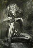 Powyższy obraz to prawdziwa symfonia szarości i czerni, gdzie światło walczy z cieniem w dynamicznej kompozycji. Postać na obrazie jest jakby nie do końca uchwycona, jej kontury rozmywają się niczym mgła na wietrze. To sprawia, że widz czuje niesamowitą tajemniczość, jakby obrazy nie chciały odsłonić wszystkich swoich sekretów. Atmosfera dzieła jest napięta, wręcz dramatyczna. Czujemy pewien niepokój, może nawet melancholię. Artysta korzysta z surowych pociągnięć pędzla, jakby każda linia była zapisem chwili pełnej emocji. Styl malarski wydaje się być ekspresjonistyczny, pełen silnych, poruszających tonów. Tu czujemy prawdziwe "emotion" w tej sztuce. Obraz działa jak magnes, przyciąga i wręcz zmusza do refleksji. Patrząc na tę kompozycję, można poczuć się jak podczas odkrywania znaleziska z innej epoki. Co to za postać? Dokąd zmierza? Moja siostra powiedziałaby, że to wygląda, jakby ktoś miał bałagan w swojej głowie, i jest w tym coś dziecinnie prawdziwego. Sposób, w jaki artysta bawi się światłem i cieniem, sugeruje walkę wewnętrzną, jaką może przeżywać postać. To obraz, który nie pozostawia obojętnym, zmusza do myślenia i budzi emocje. Chociaż może wyglądać surowo, jest w nim ukryta delikatność, która zaprasza nas do głębszej interpretacji. To naprawdę fascynujące, jak wiele można odkryć, patrząc na ten tajemniczy obraz.