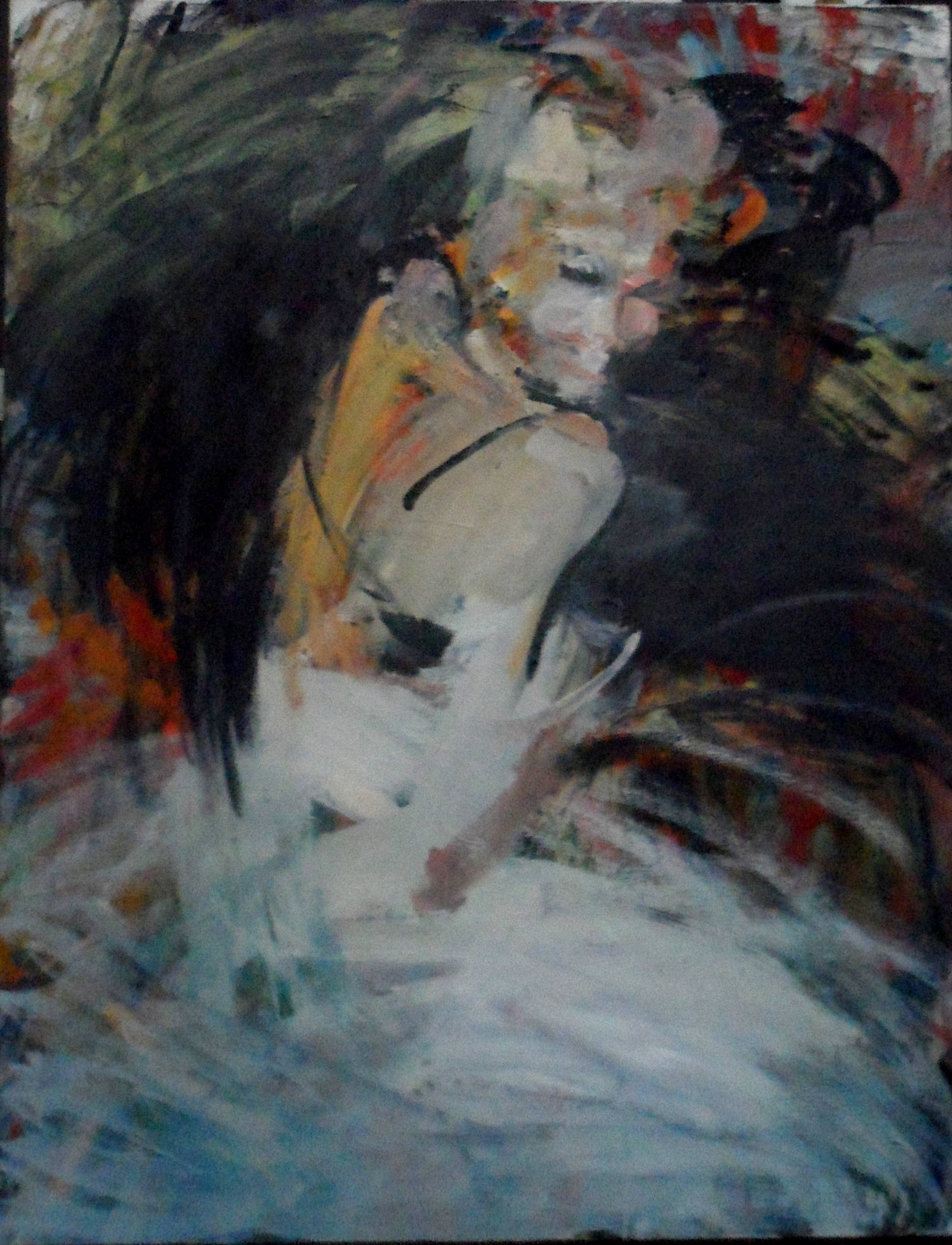 Obraz przyciąga oko dynamiczną mieszanką kolorów, gdzie dominują ciemne, kontrastowe barwy z przebłyskami czerwieni, bieli i pomarańczu. Pojawiająca się postać jest zaledwie zarysowana, jakby chciała się skryć w chaosie barw. Widz patrzy na nią z pewnym dystansem, jakby była częścią tańczącego snu. Wrażenie to potęguje użycie luźnych, rozmazanych pociągnięć pędzlem. Artysta świadomie unika szczegółowości na rzecz emocjonalnej ekspresji, co czyni obraz pełnym niepokoju i tajemnicy. Czujesz to? Taki mind-blowing mood, który zmusza do refleksji. A może dziecko by powiedziało: "To wygląda, jakby ktoś zatańczył farbami!" Przez tę mglistą kompozycję przebija się coś z nostalgii, tęsknoty, a może i jakiejś radości ukrytej w środku. To po prostu intryguje, ale też zaskakuje swoją intensywnością. A użycie kolorów i formy zostawia widza z uczuciem niedosytu. Czy to sen, czy rzeczywistość? Zdecydowanie jest to coś, co zapada w pamięć.