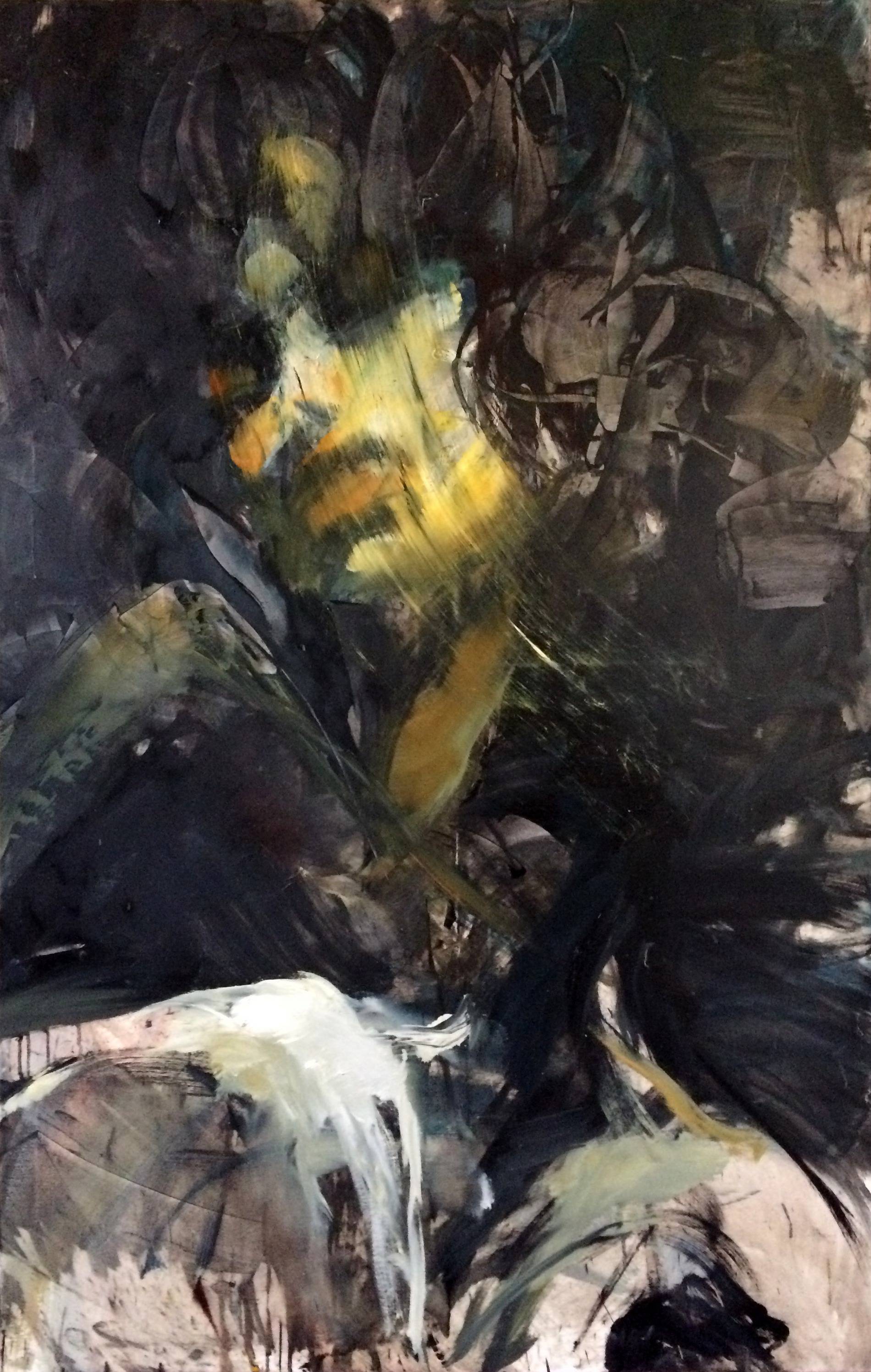 Obraz emanuje tajemniczym nastrojem, jakby artysta chciał uchwycić moment pełen niepokoju i refleksji. Dominują ciemne, stonowane odcienie, głównie czerni i szarości, które tworzą tło dla jaśniejszych, złocistych akcentów. Kształty są nieostre i abstrakcyjne, jakby namalowane w pośpiechu, a może nawet w przypływie emocji. Technika zastosowana przez twórcę to dynamiczne pociągnięcia pędzla, które nadają dziełu nieco chaotycznego charakteru. Ta kompozycja wydaje się nieco surrealistyczna. Moze nawet oniryczna, skłaniając odbiorcę do osobistych interpretacji. To właśnie element nieprzewidywalny, który sprawia, że odbiorca może poczuć się zaintrygowany, a może nawet chwilowo zdezorientowany. Dzieło może wywoływać uczucie niepokoju lub fascynacji. Could it be a representation of an inner turmoil? Patrząc na ten obraz, można poczuć, jakby było się wciągniętym w inny świat. Świat, który prowokuje do przemyśleń i eksploracji nieodkrytych zakątków własnego umysłu. To trochę jak sen, który wymyka się jasnym definicjom. Moim zdaniem, to sztuka, która zachęca do zadawania pytań. "Czemu ta biel jest taka dziwna?" zapytałby mały chłopiec. Niesamowite, ile emocji może wywołać kilka pociągnięć pędzla na płótnie.