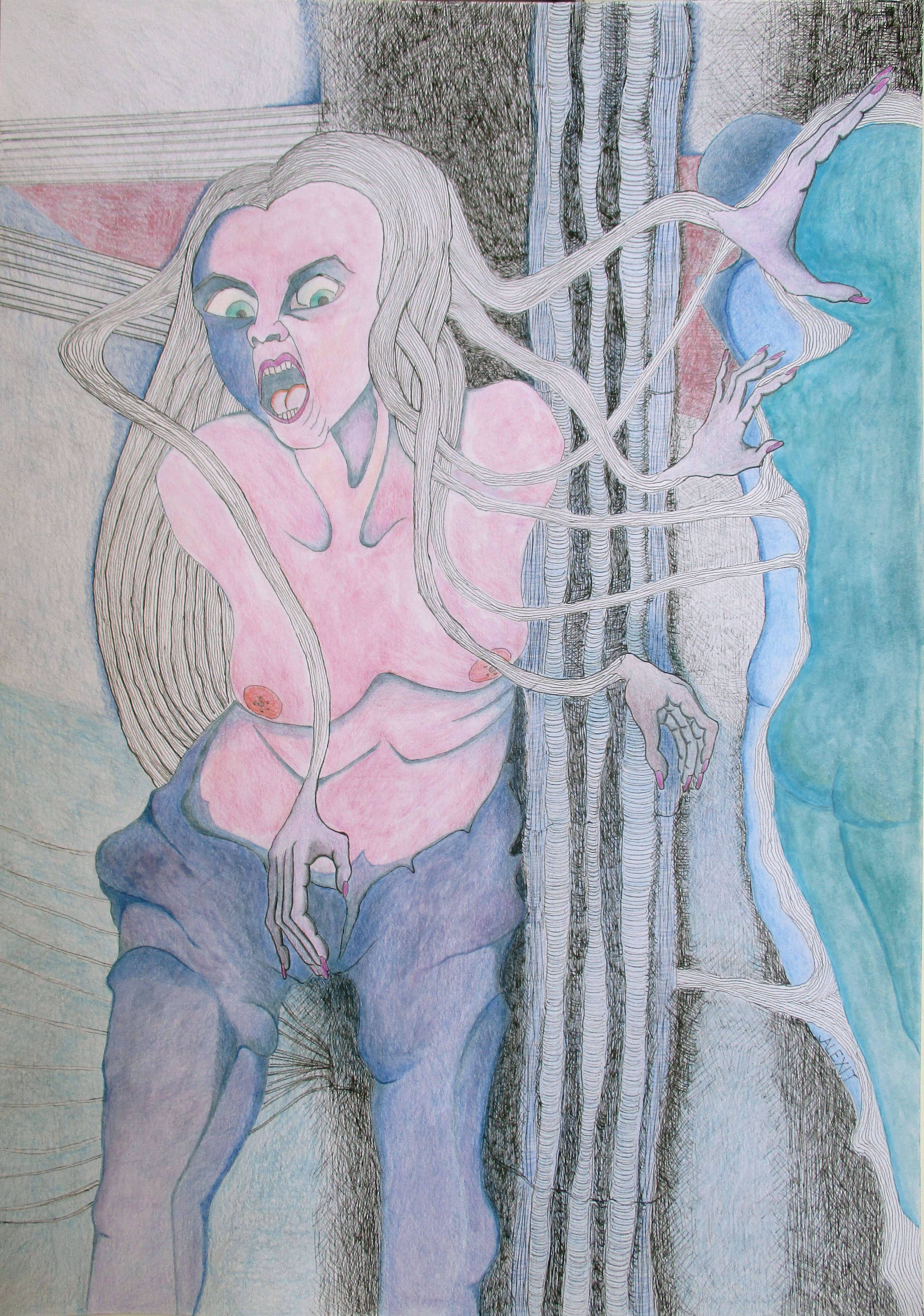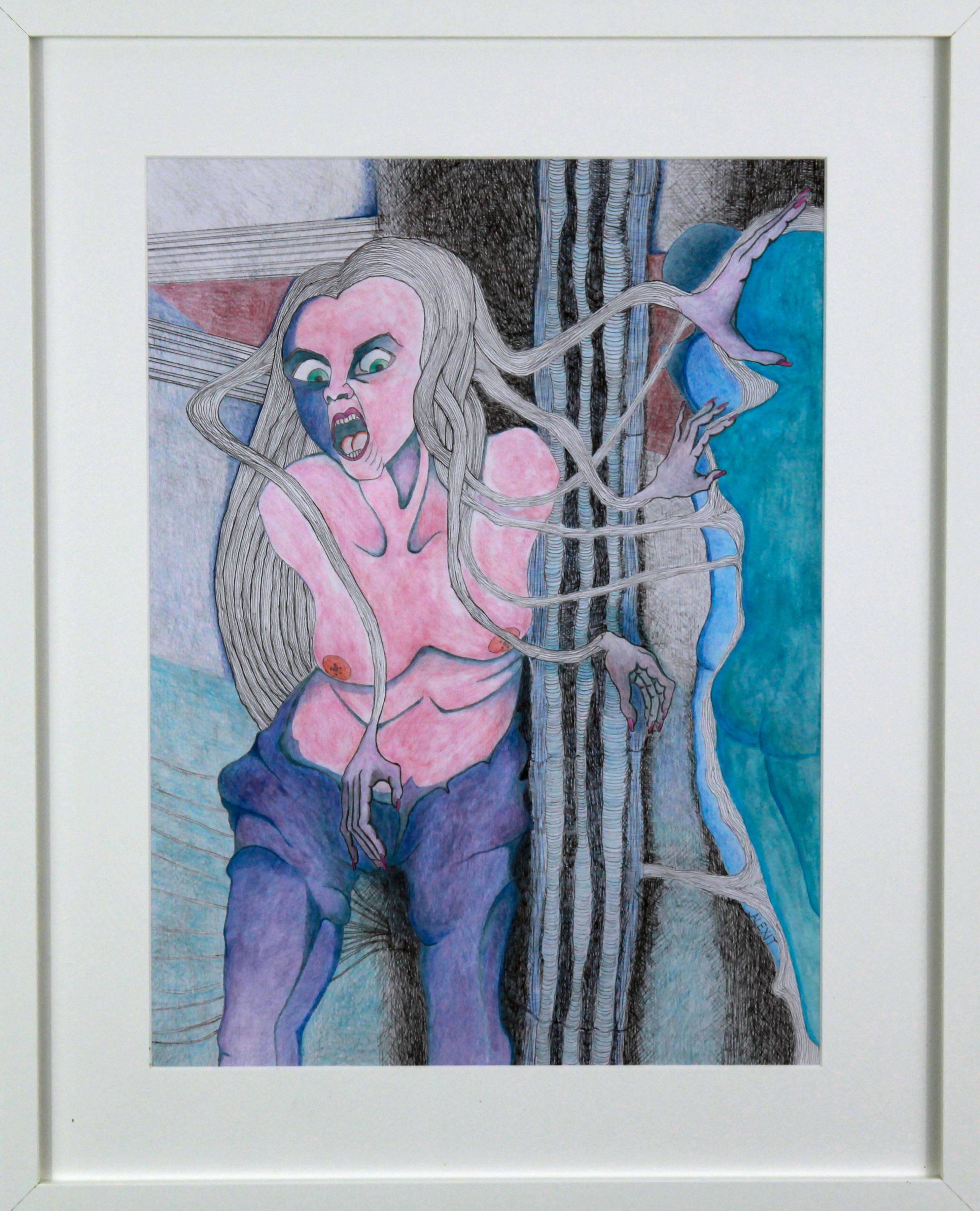 Praca oprawiona w białą ramę o wym. 52,5x42,5x3,5 cm