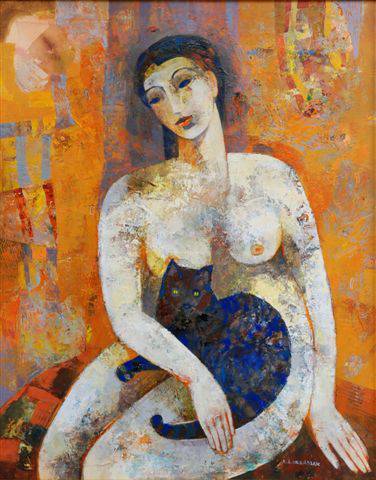 Alicja Słaboń Urbaniak - Siedząca Pani z czarnym kotem
