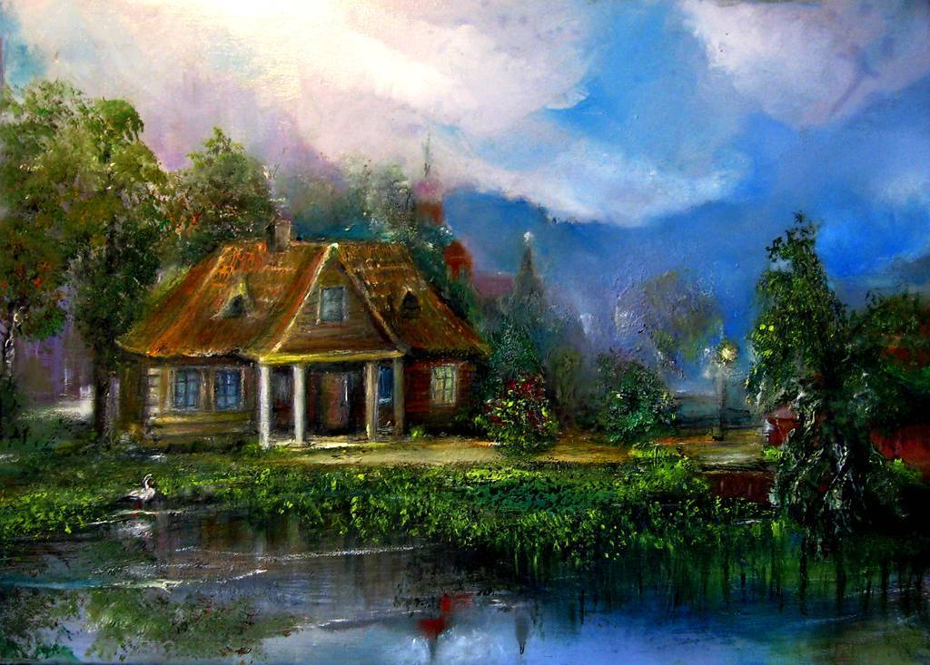malowany szpachelką i pędzlem