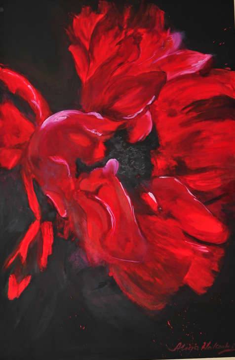 kwiat w powiewie wiatru ,mak z cyklu mistyczny ogród,pełen energii dodaje, ruchu ,dobra energię,ekspresyjny .bellissimo fiore da la energia alla parete e bellissimo in salone ,